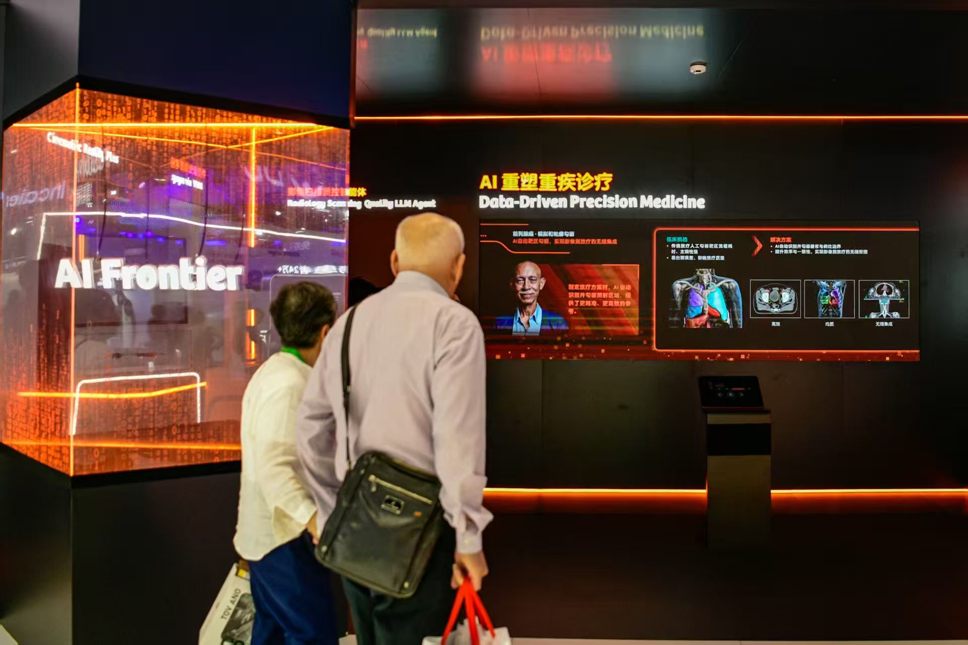 西门子医疗展台特别设立了AI专区。劳动报记者颜筱依摄影