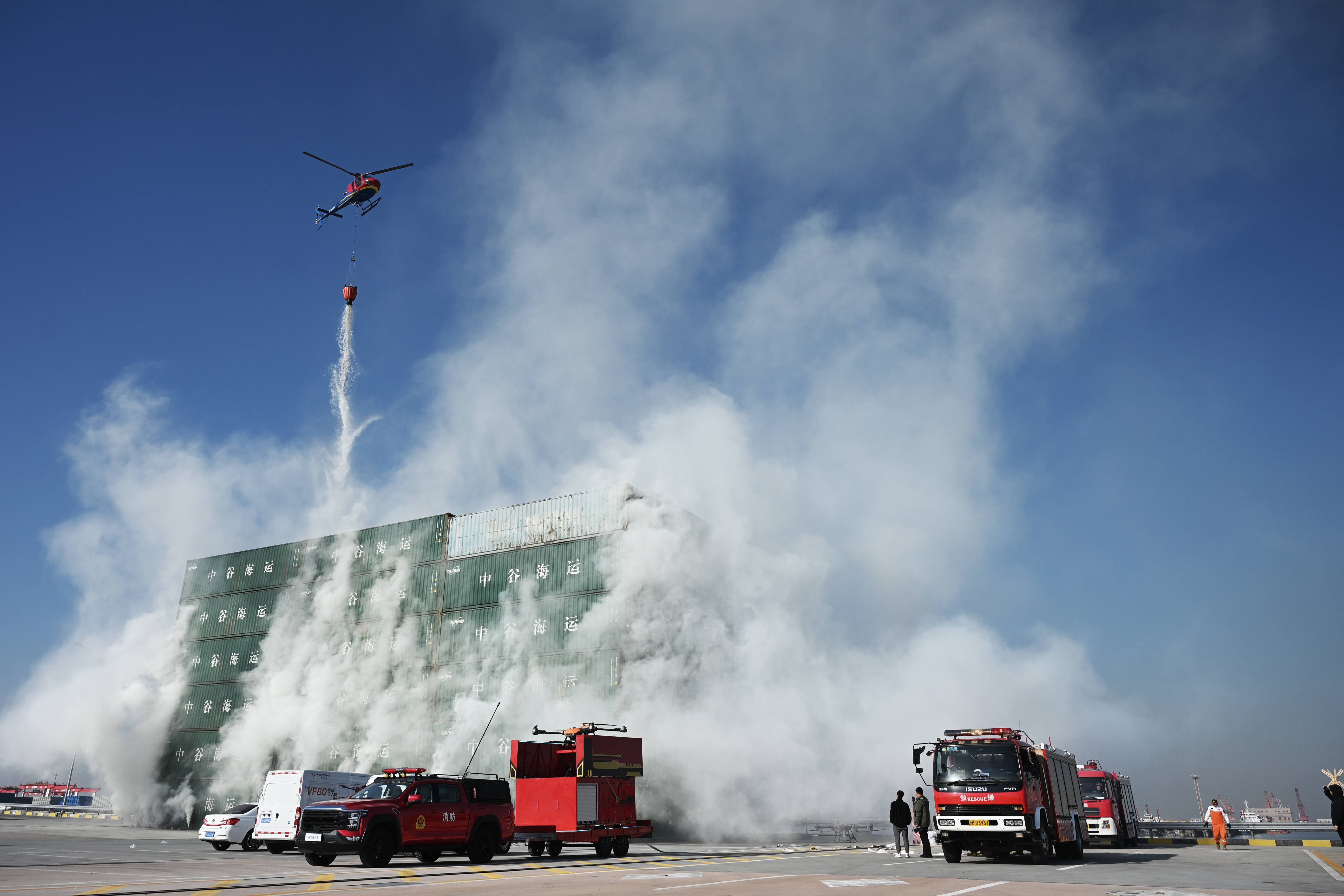 11月26日,“沪应-2025”航空应急救援实战联演在罗东集装箱码头举行,这是本市首次以航空应急救援为主题的全流程实战应急演练,空中力量与地面消防互相配合,成功展示了一场空地一体的高强度灭火战役。