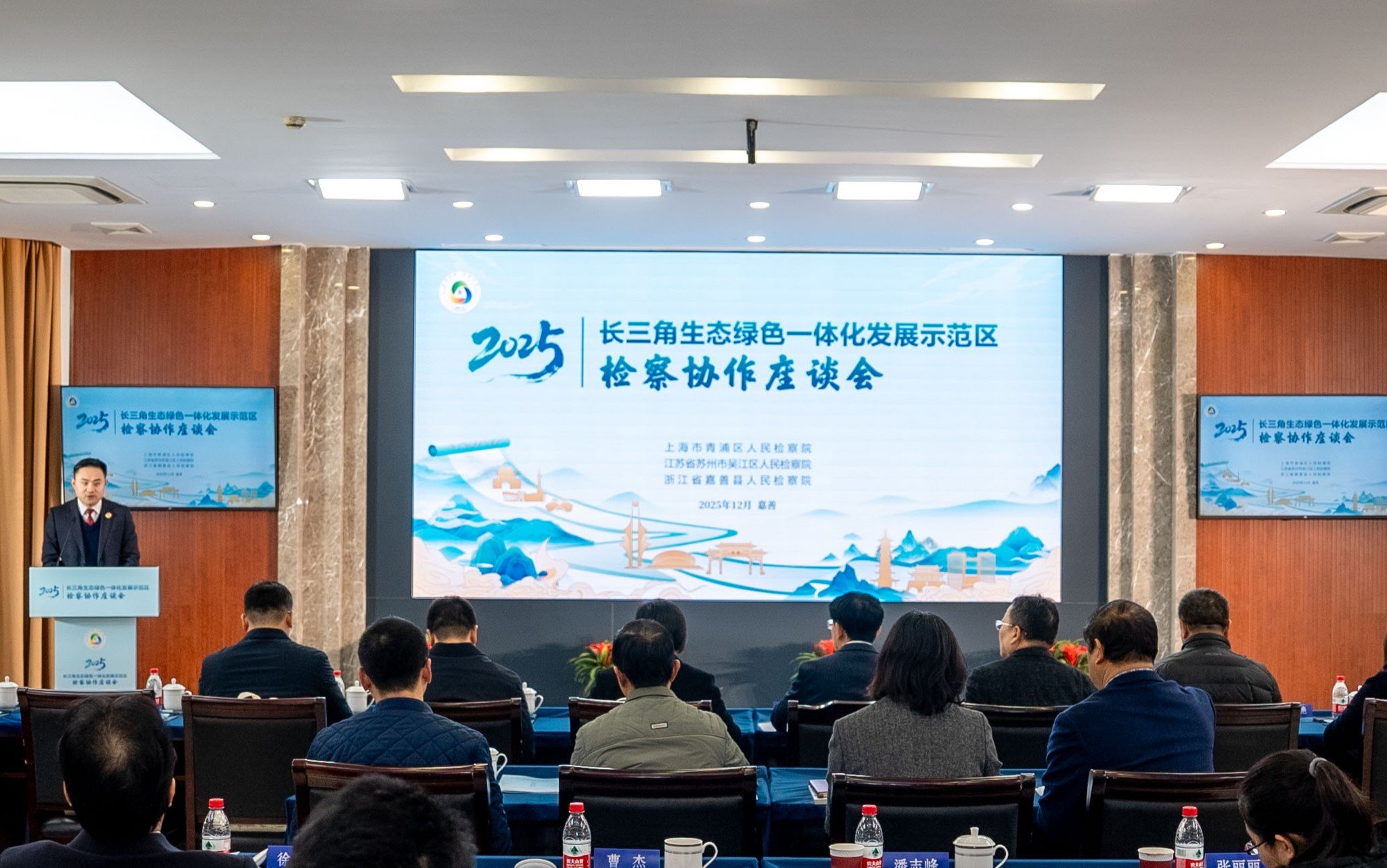 12月25日,上海市青浦区检察院、苏州市吴江区检察院、嘉善县检察院共同召开2025年长三角生态绿色一体化发展示范区检察协作座谈会,总结三地检察机关合作成果,并发布2026年十大检察协作项目。