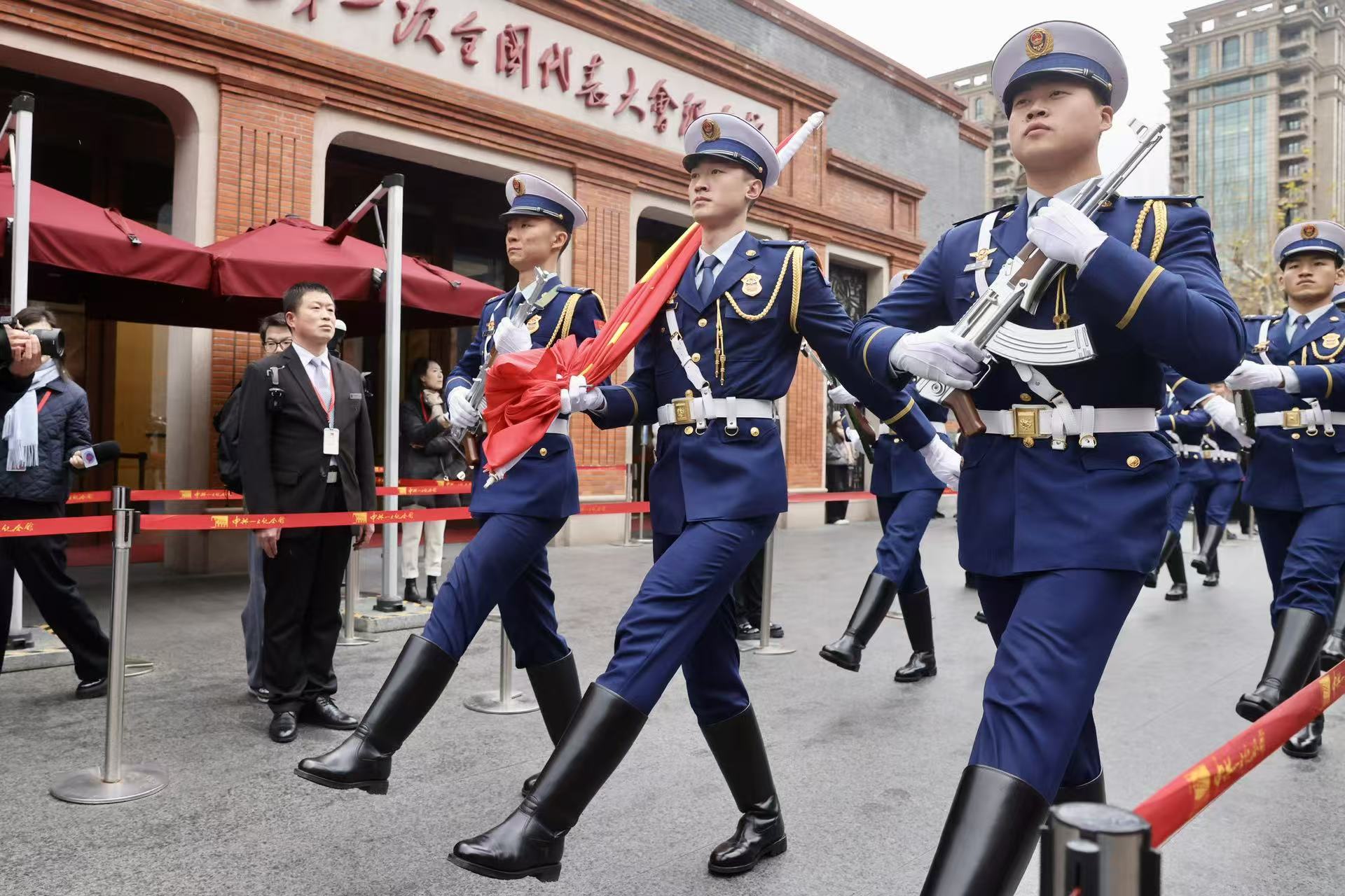 头图为中共一大纪念馆举行神圣庄严的升旗仪式。劳动报记者 贡俊祺 摄影