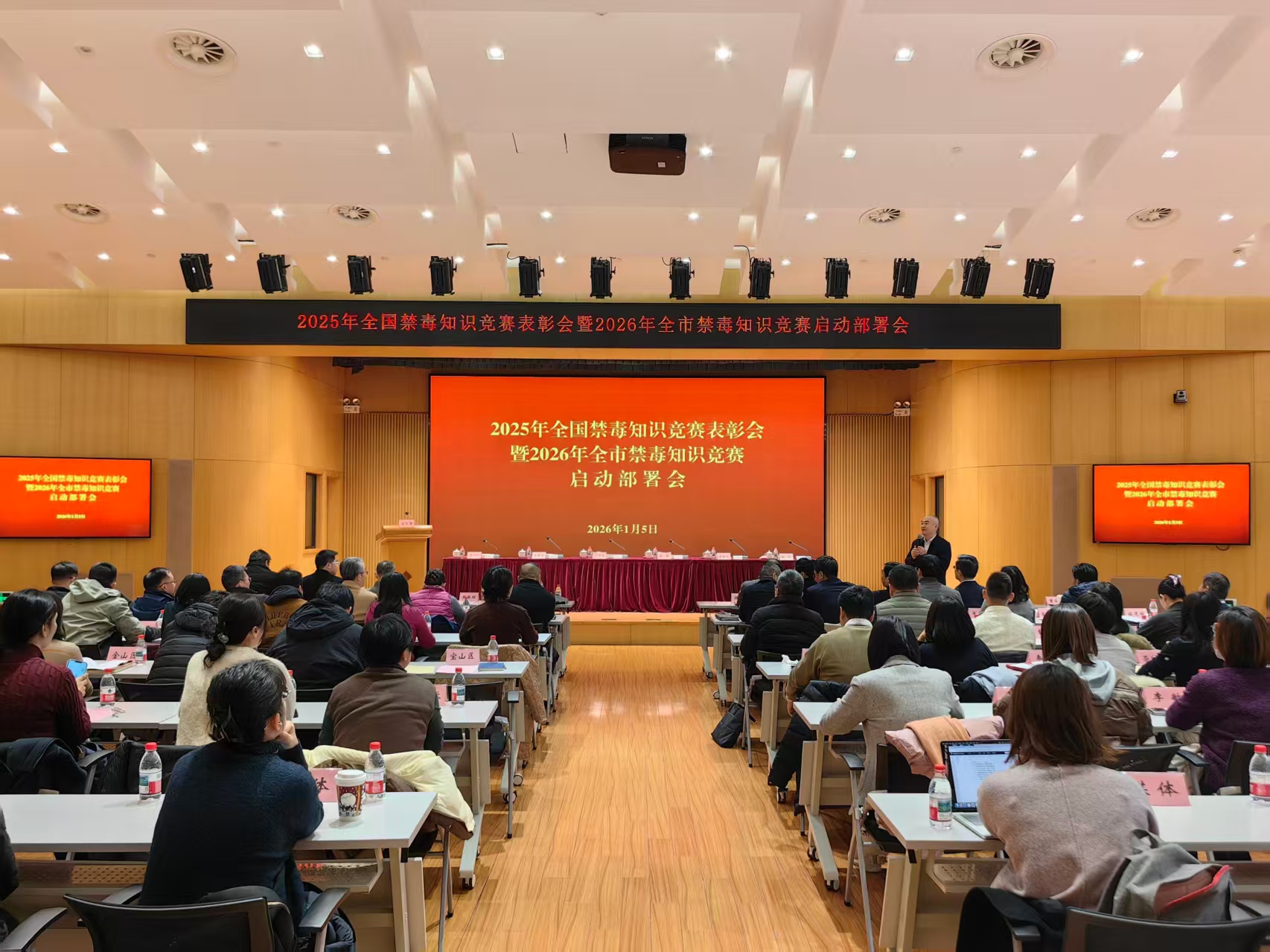2025年全国禁毒知识竞赛表彰会暨2026年全市禁毒知识竞赛启动部署会1月5日在普陀区青少年活动中心举行。