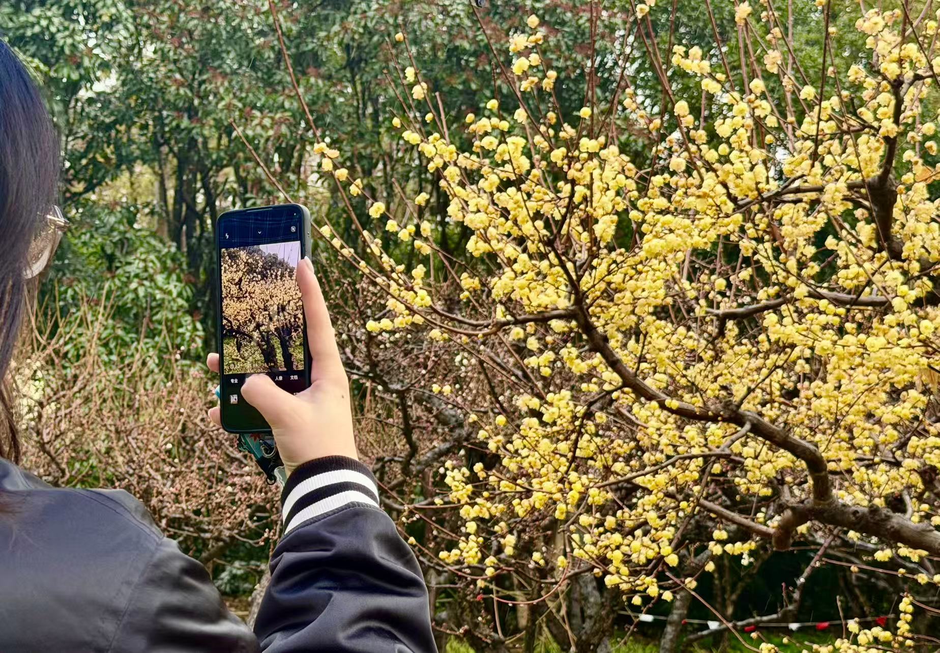 市民拍照打卡蜡梅。劳动报记者 贡俊祺 摄影报道
