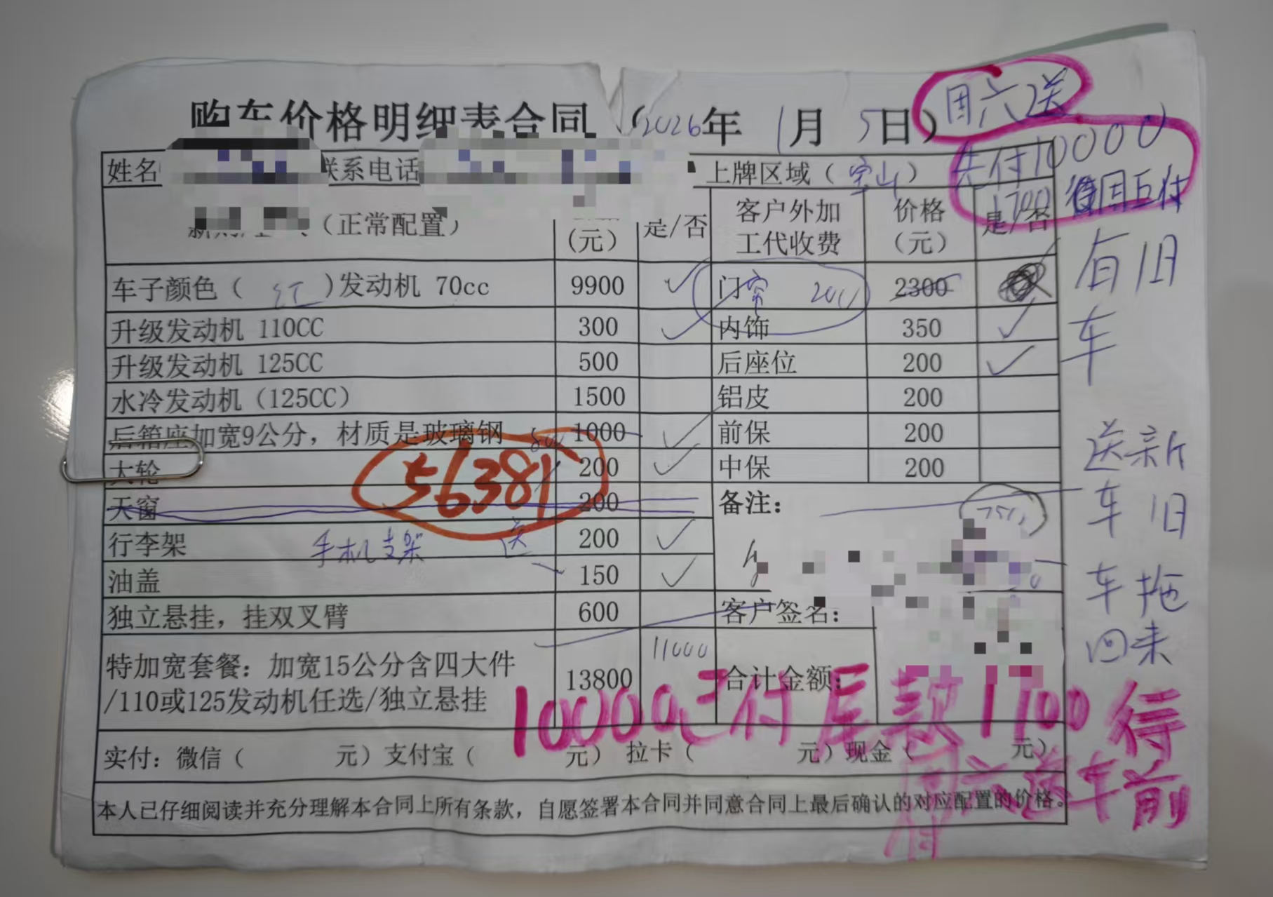 头图为部分改装二手残疾车的明细单据。警方供图