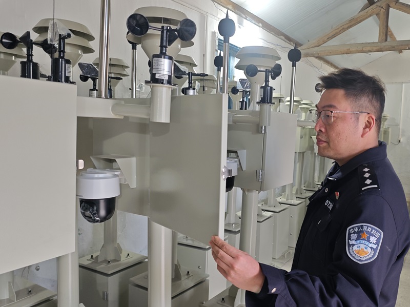 头图为办案人员正在查看扬尘监测设备。警方供图