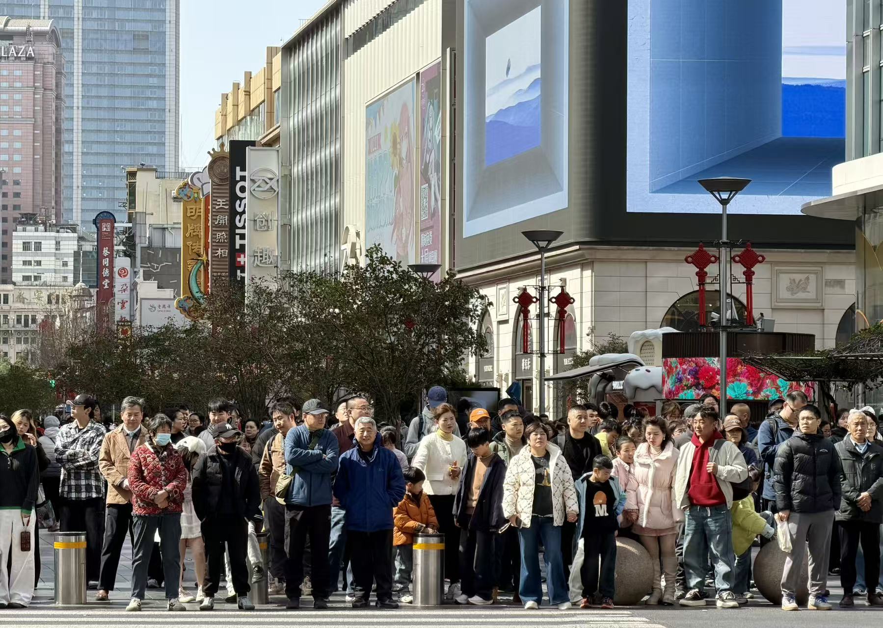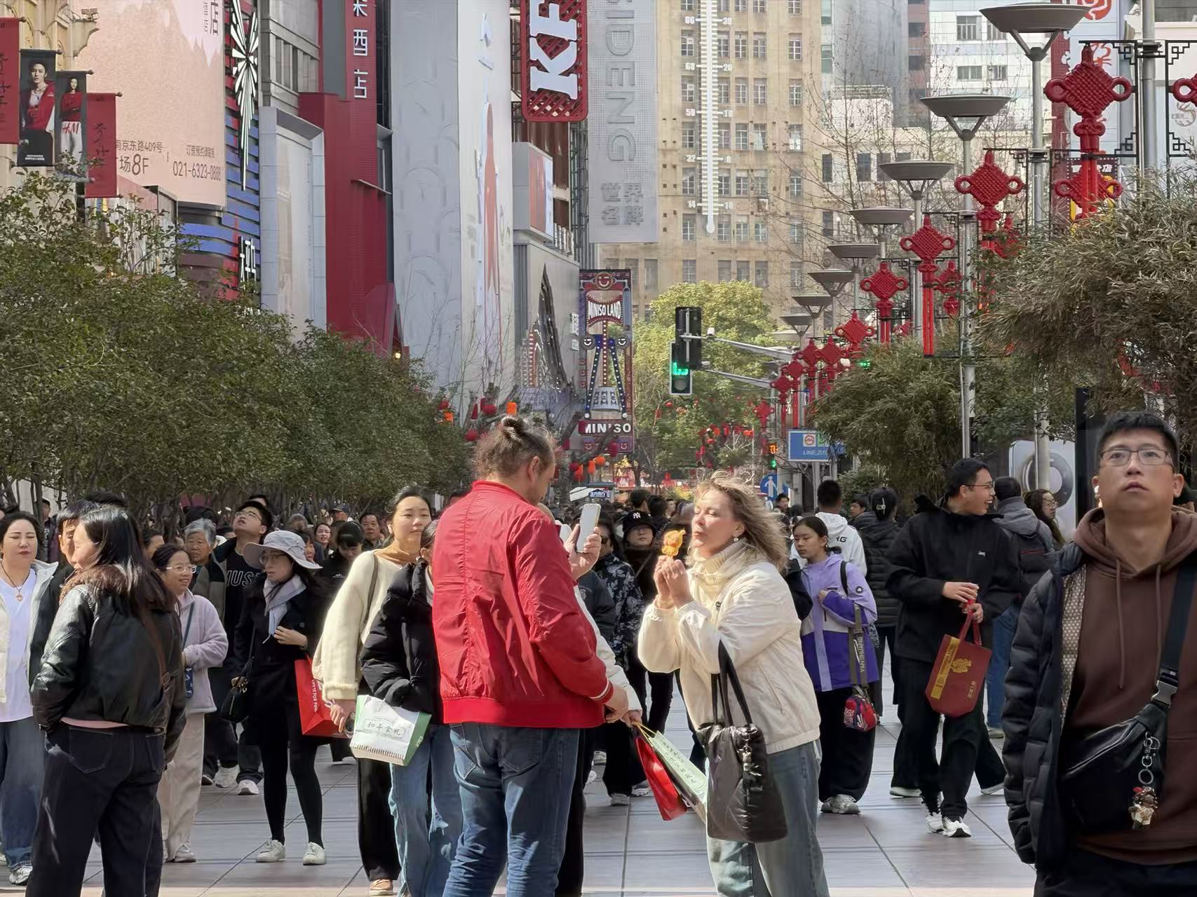 春节假期临近尾声,申城天气晴好,阳光明媚。南京路步行街、外滩、苏州河畔等核心地标依旧人气爆棚,持续处于客流高峰,市民与中外游客抓紧假期尾巴,尽享春日暖阳与节日喜悦。