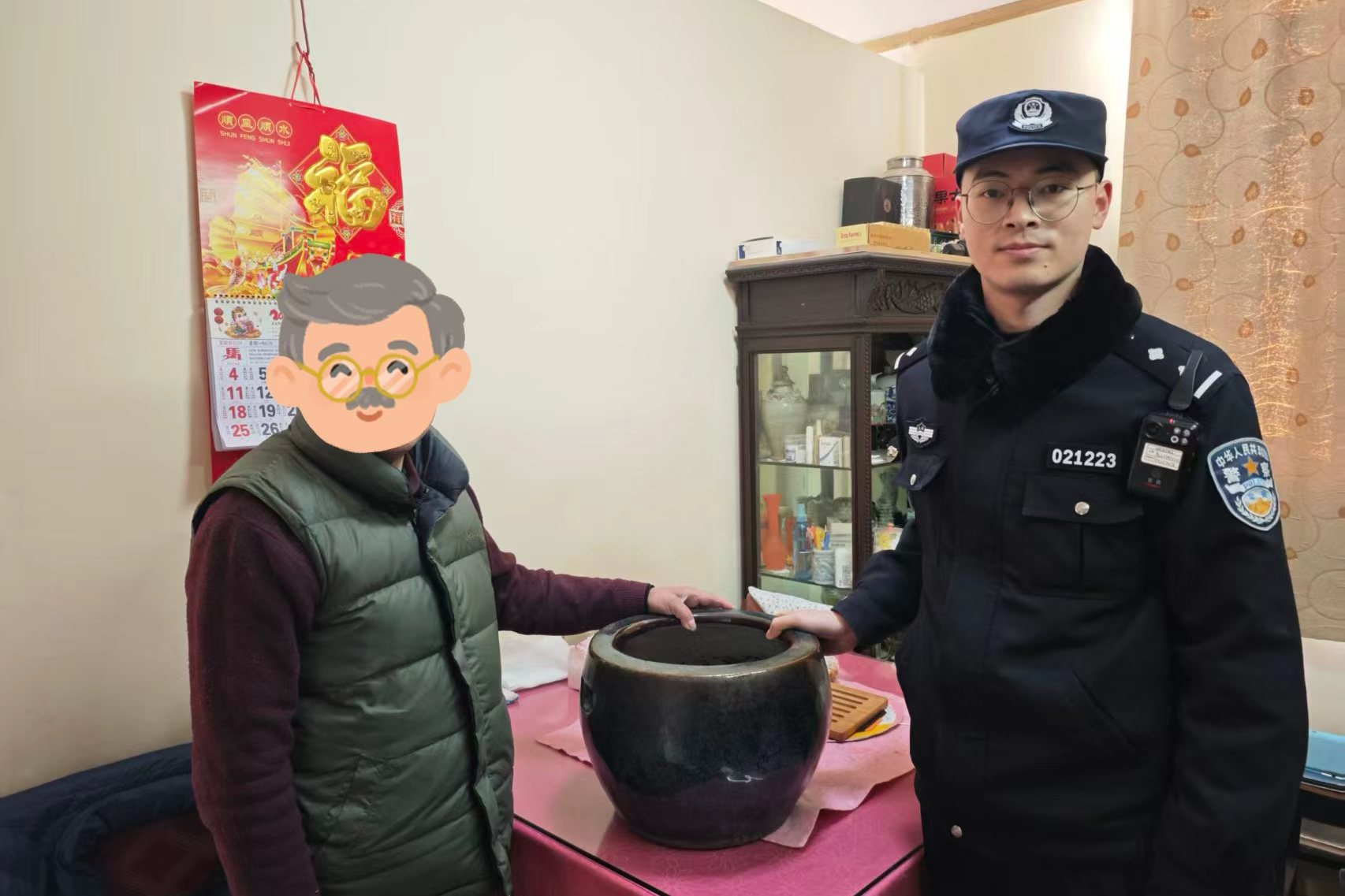 头图为警方帮助居民找回了被偷走的祖传米缸。警方供图
