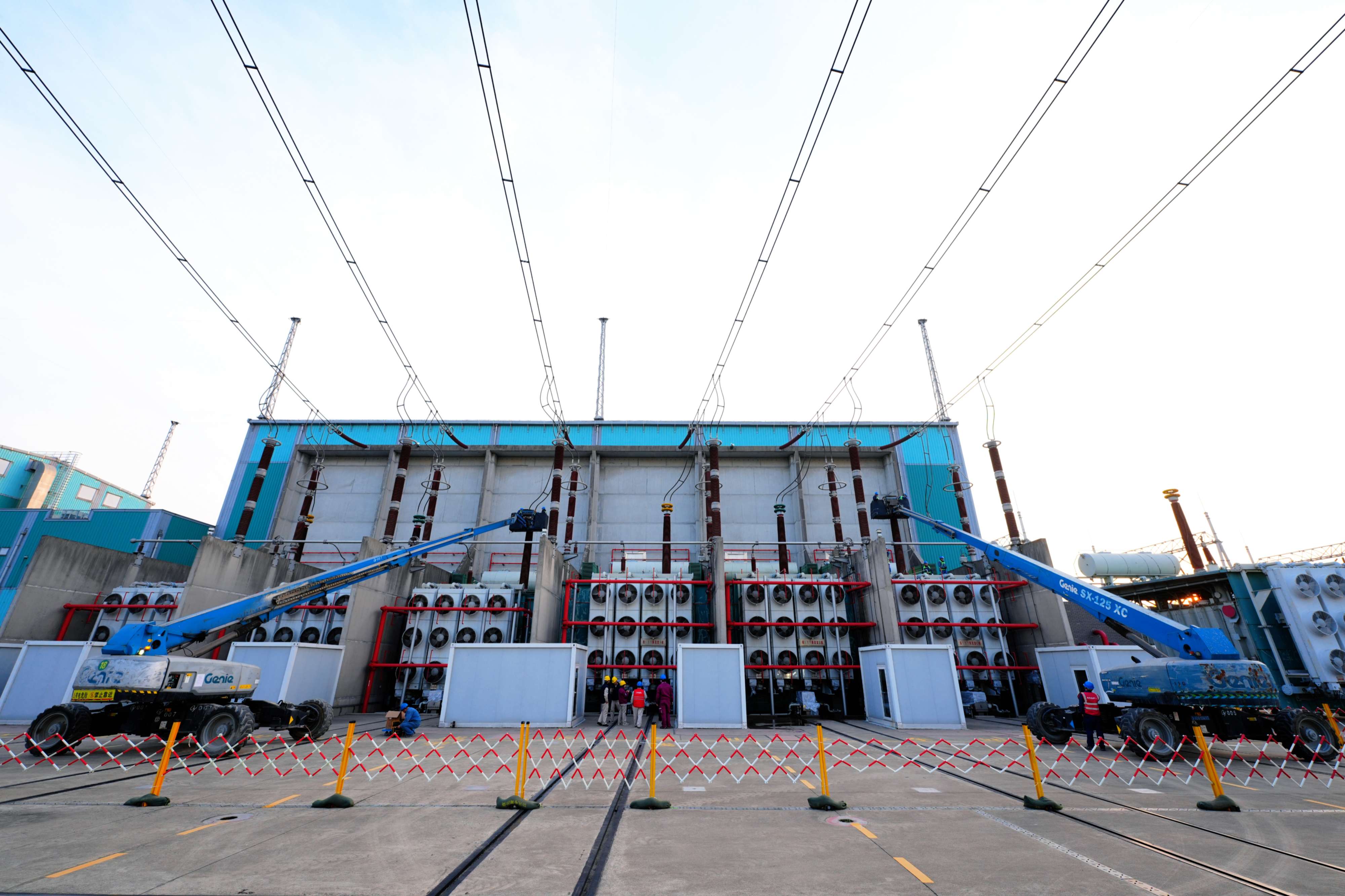 头图为±500kV枫泾换流站换流变检修及试验工作现场。国网上海电力提供