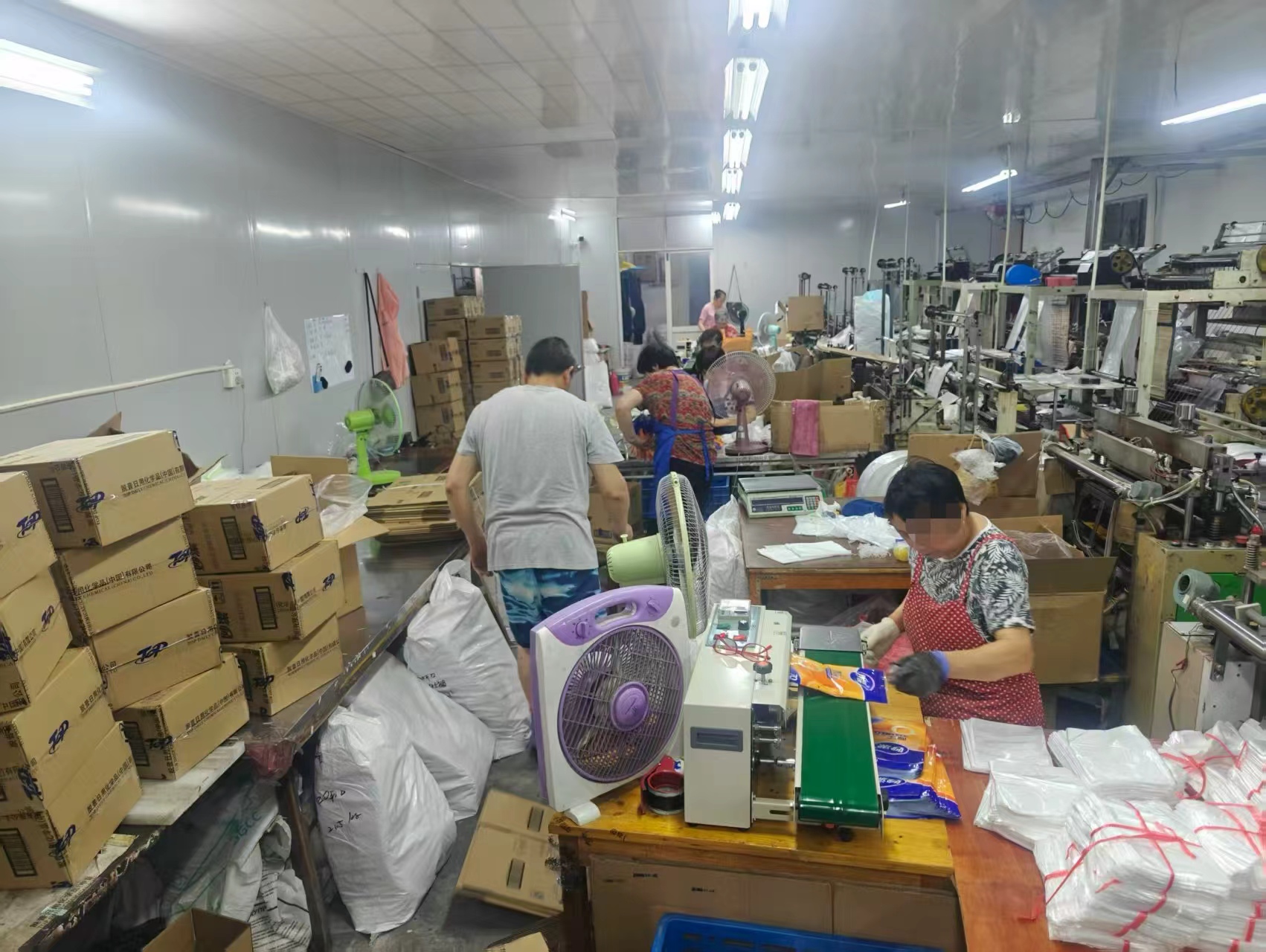头图小作坊里加工生产假冒品牌的保鲜袋、保鲜膜。警方供图