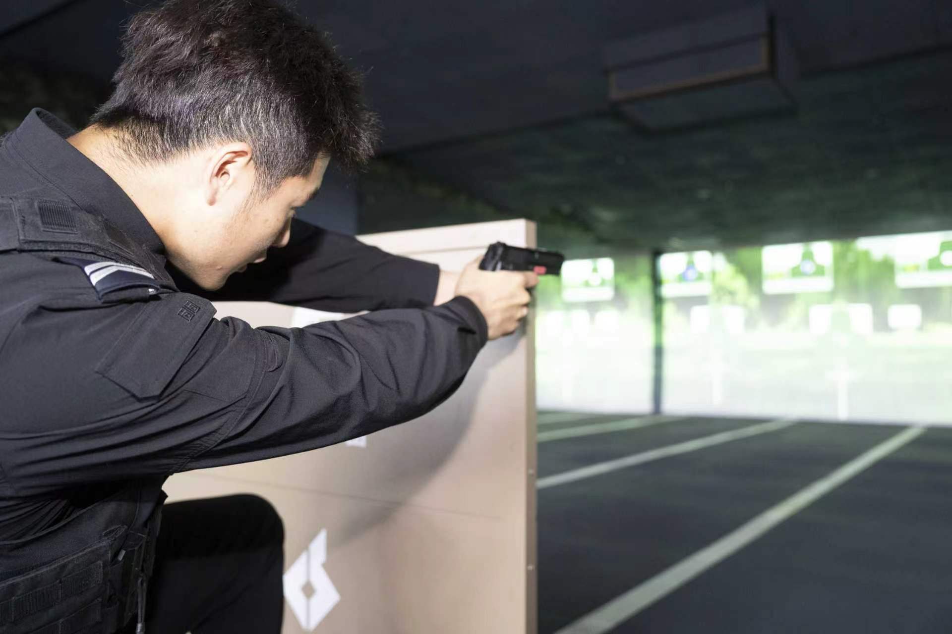基地内的智能靶场同样科技感十足,不仅支持实弹、虚拟射击双模式训练,还能逼真模拟各类极端天气,让实战射击的场景感拉满:通过淋蓬头、打泡机、闪光灯组合,搭配专业音响系统,精准模拟雨、雪、雷、风等恶劣天候;靶场最内侧的受弹区还设有高清幕布,可投影不同天气的动态画面,让射击训练更具身临其境的沉浸感。射击过程中,弹着点实时清晰显示在可移动的靶车智能屏上,以便民警随时查看成绩,后台同步留存精准训练数据,教官据此开展弹道分析等个性化指导,更有针对性地提升民警射击技能与实战处置水平。