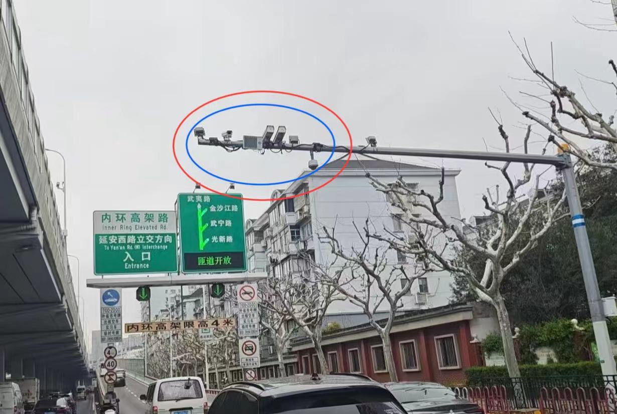 上午时分,记者在内环外圈沪太路上匝道处看到,这里增设了一个“自动感应劝阻系统”,一旦有非机动车或行人想要从该处进入内环高架时,系统就会自动识别并展开定向喊话,进行劝离。