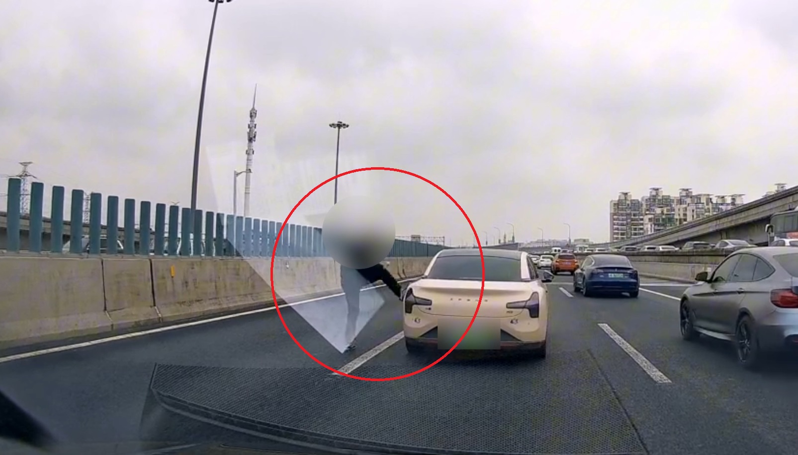 头图为男子高架上演“全武行”。警方供图