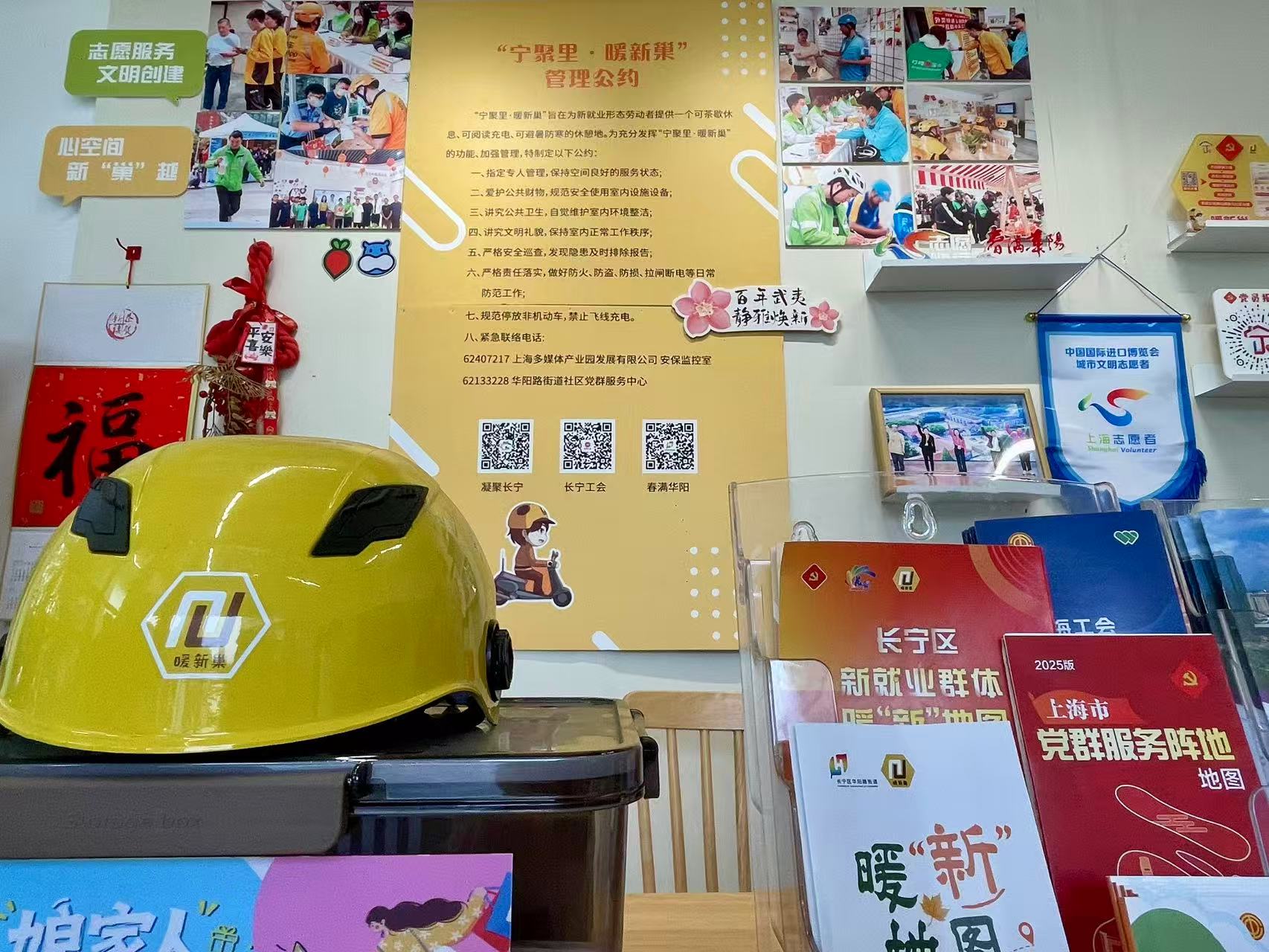 在位于兆丰广场外广场上的一处“暖新巢”新就业群体驿站内,记者就看到了墙上书写的站点服务宗旨:这里旨在为新就业形态劳动者提供一个可茶歇休息、可阅读充电、可避暑防寒的休憩地。