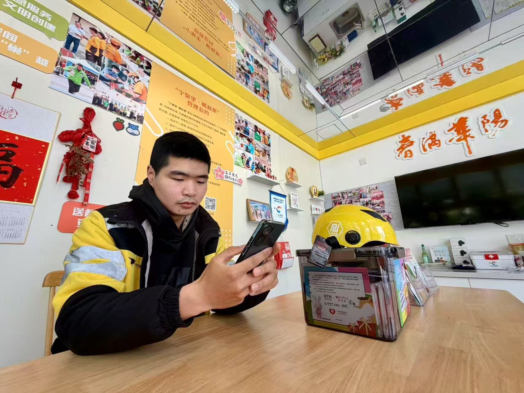 说起驿站,还有一段小插曲。刚建成时,孙江涛和同事们都不好意思进门,看着驿站整洁精致的装修,大家都误以为是售卖商品的门店,只敢在门口悄悄打量、徘徊不前。直到街道工作人员一次次主动招呼、热情邀请,小哥们才终于放下顾虑,勇敢迈进了这个专属休息空间。
