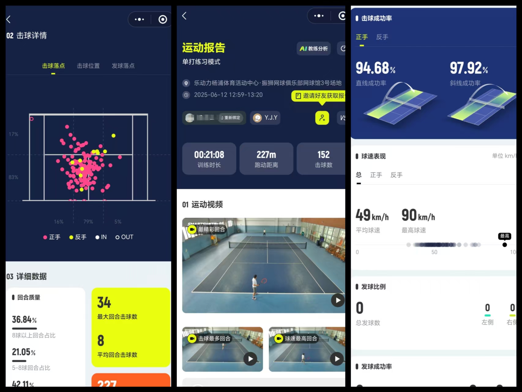 “以前看数据像查体检报告,现在它直接当起教练。”小袁的手指在屏幕上滑动,点开详细的最新训练报告:一发、二发的成功率,击球次数、击球落点、击球速度、跑动距离、正反手的成功率都详细列在了上面。