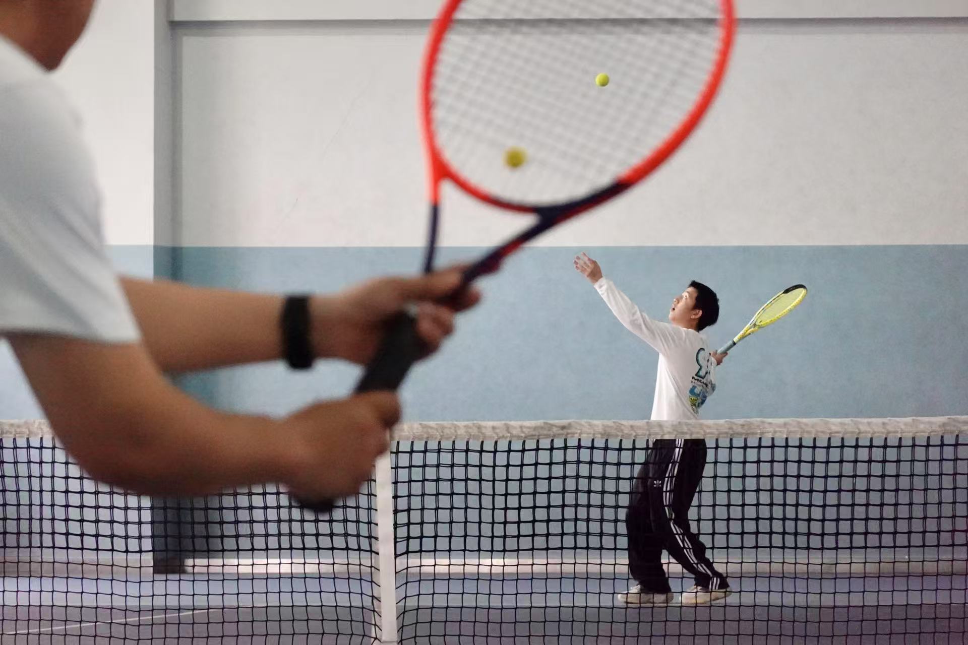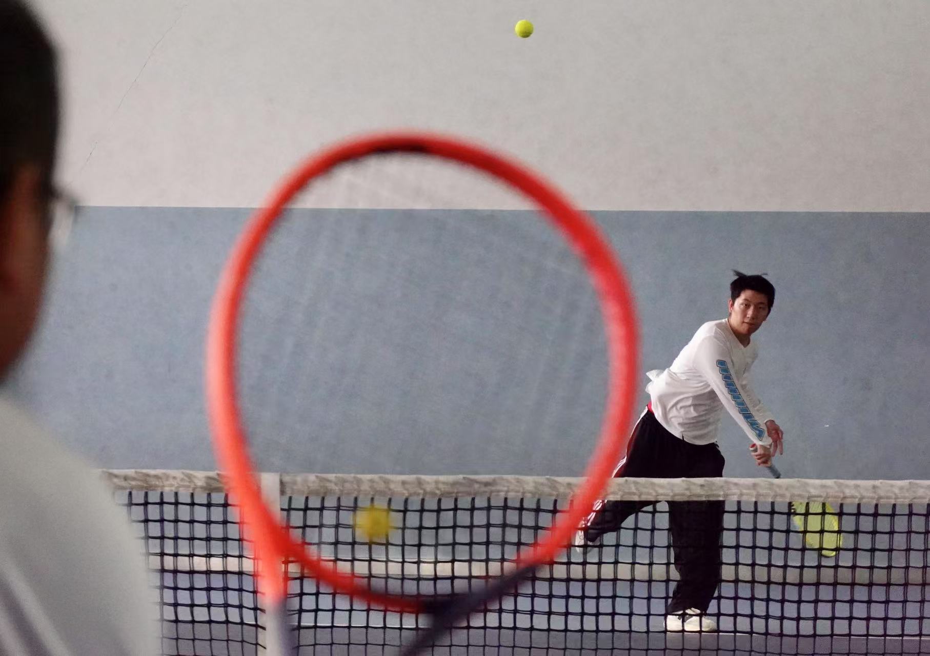 受去年以来网球热潮的带动,袁吉阳在今年3月份加入“网友”大军。因为年轻,有多项运动的基础,他的进步速度肉眼可见。
