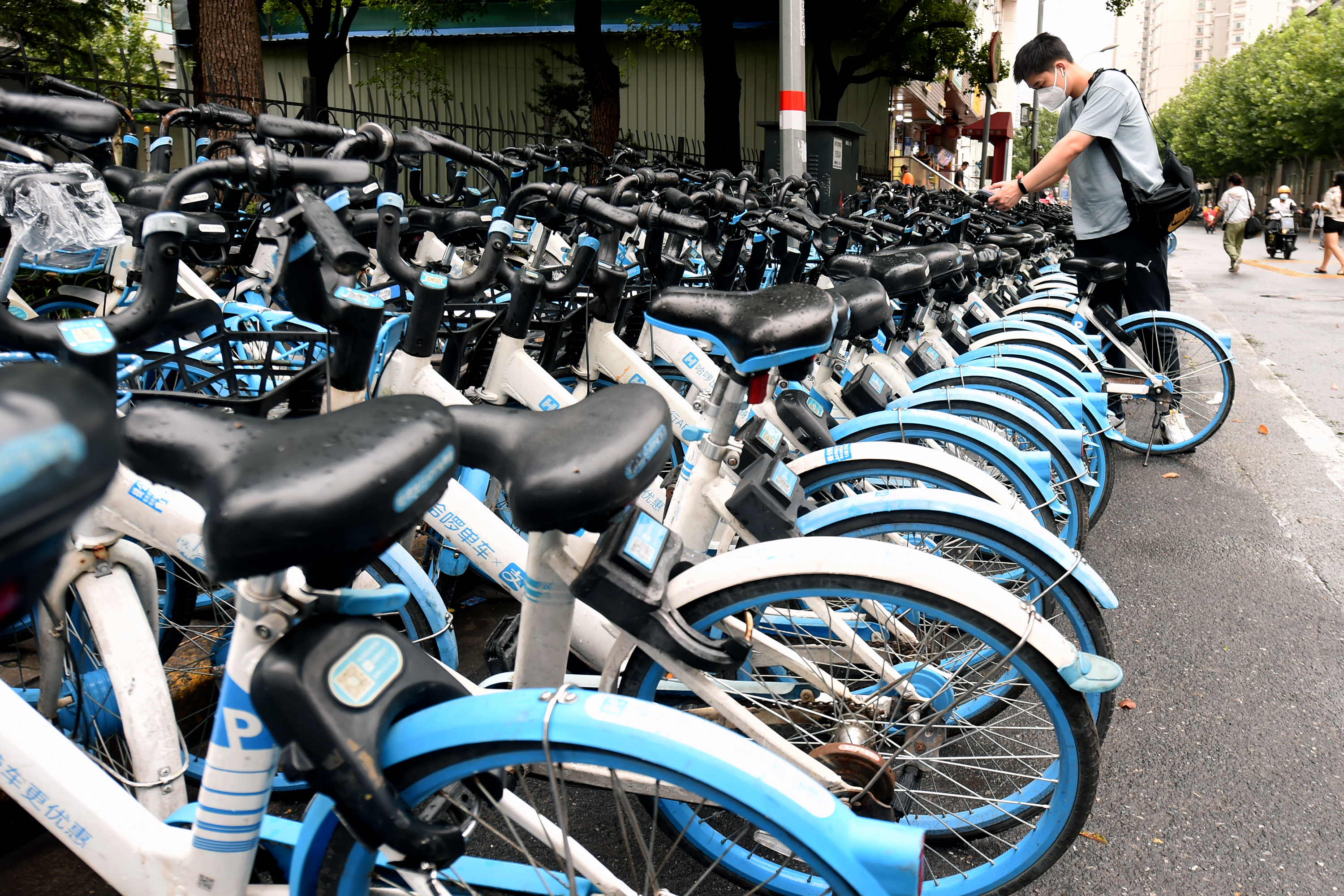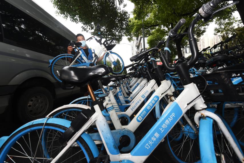 早上七点不到,吴大胜就已经出现在镇坪路地铁站出口处了,他要做的是将大家骑到地铁站的车辆补充到周边的小区门口,供大家持续使用。“我们不可能等到早高峰才开始运车的,不然地铁站进出口的这一大片空地都要堵死了。”吴大胜介绍。
