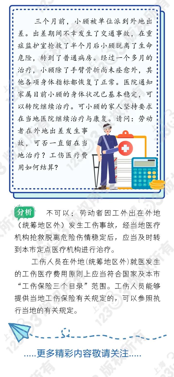 摘要: 到外地出差,发生工伤后可否一直留在外地治疗?