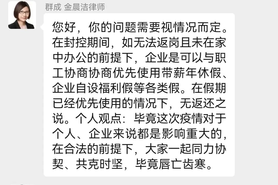 1、在疫情期间因封控未能返岗,因封控未上班的工时是否返岗后要还?