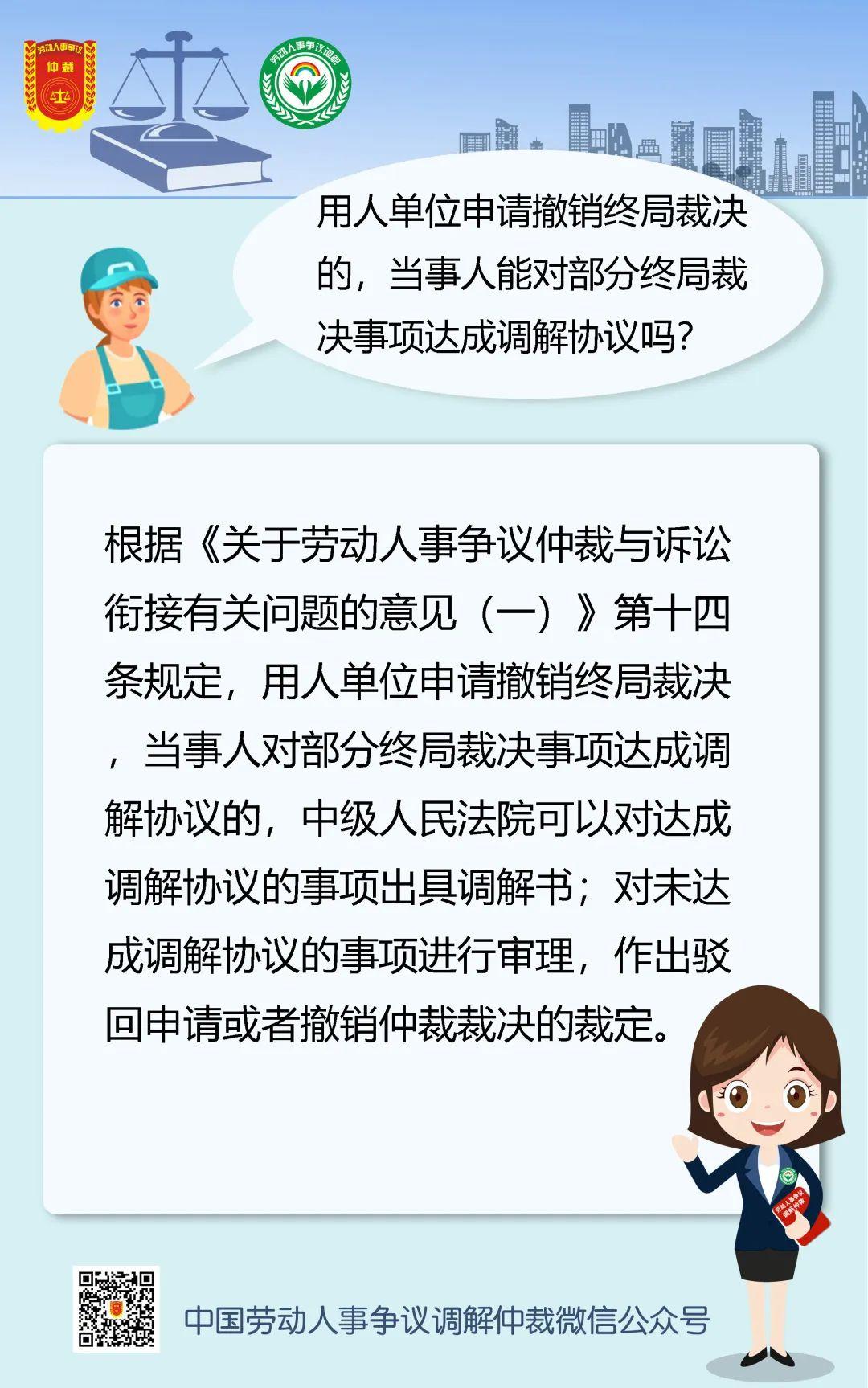 摘要: 用人单位申请撤销终局裁决的,当事人能对部分终局裁决事项达成调解协议吗?