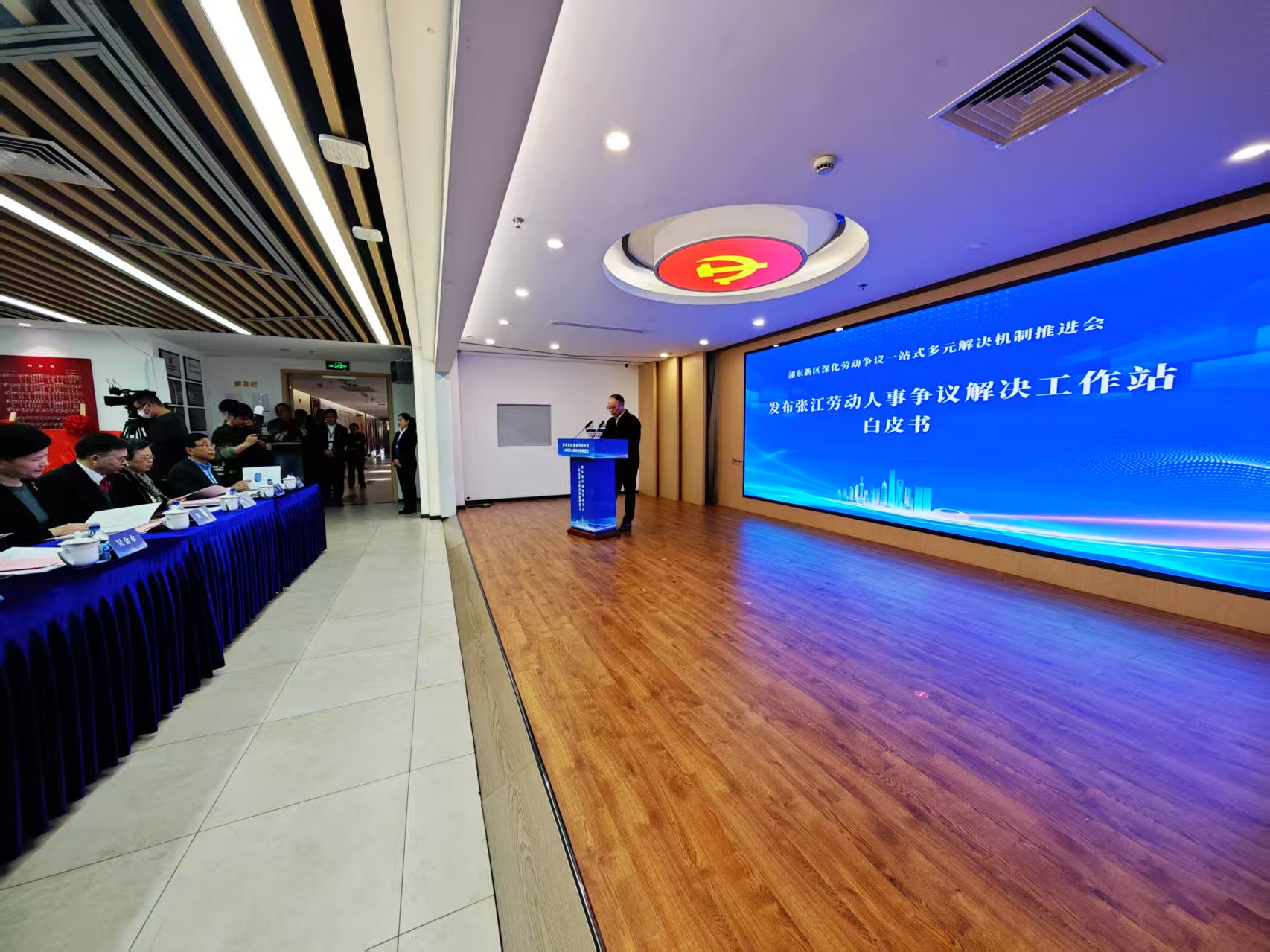 立足张江板块案件矛盾纠纷特点,推进会上为“上海市第一中级人民法院劳动争议张江巡回审判站”“上海市浦东新区人民法院‘浦法新枫’张江巡回审判站”揭牌,签订《“劳动人事争议解决工作站”管理办法》,标志着“三庭五位”机制正式升级至5.0版。