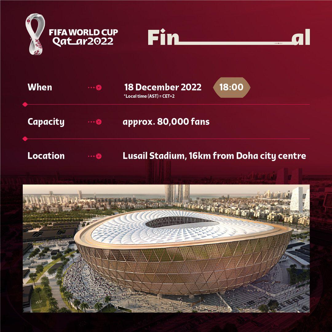 小组赛阶段所有的比赛都将于当地时间13时、16时、19时和22时四个时间点(对应北京时间分别是18时、21时、24时和次日3时)开赛,中国球迷不需要长时间熬夜观看。淘汰赛阶段比赛将于当地时间18时和22时进行。哈里发国际体育场将在12月17日18时(北京时间23时)举办三四名决赛,而决赛将于当地时间18日18时(北京时间23时)在卢塞尔体育场进行。