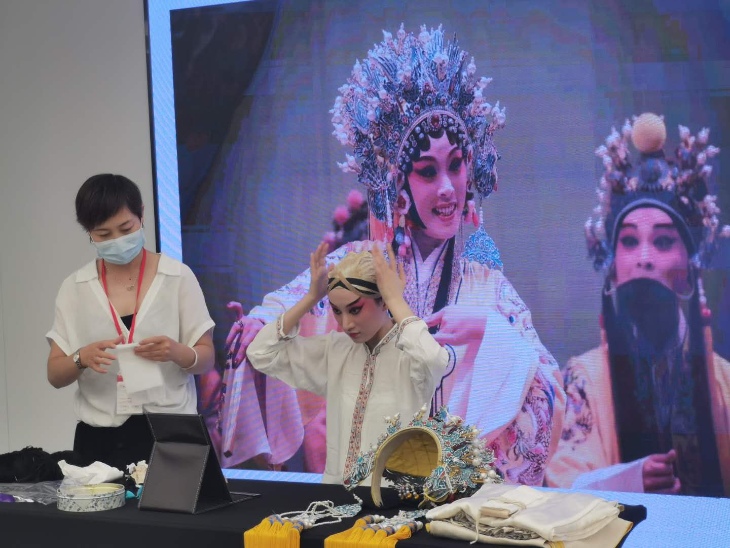 与此同时,在别克艺术空间里,一场昆曲普及活动更是热闹非凡。记者走近发现,上海昆剧团青年演员张颋、张莉正以化妆+表演的方式,为戏迷们现场揭秘昆曲经典《长生殿》中杨贵妃的妆容之美。