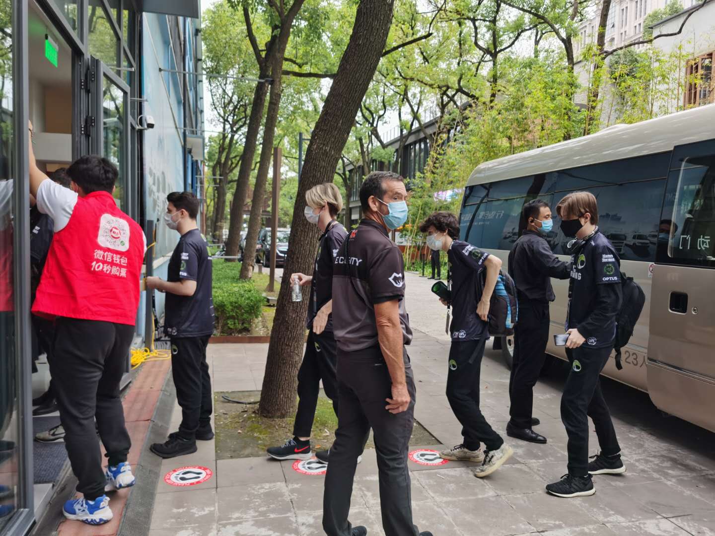 来了,来了!9月25日15:00,记者在英雄联盟入围赛比赛现场,身穿红白黄队伍的MAD战队缓缓走来,紧跟他们身后的是他们首日就将交战的对手——ITZ战队。在完成安检、测温以后,两支战队相继走入了比赛场地,为一小时后的入围赛开幕战作最后的准备工作。