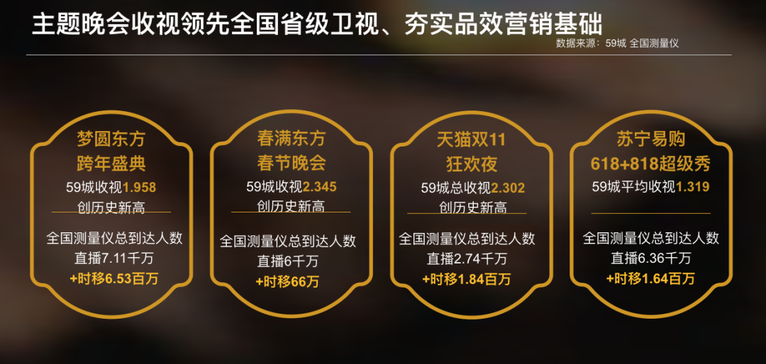 据悉,今后东方卫视将在定制晚会上继续发力,电视大屏为主,手机小屏为辅,优质晚会直播内容的电视大直播创造热点、引领热度,由此拉动小屏带货。