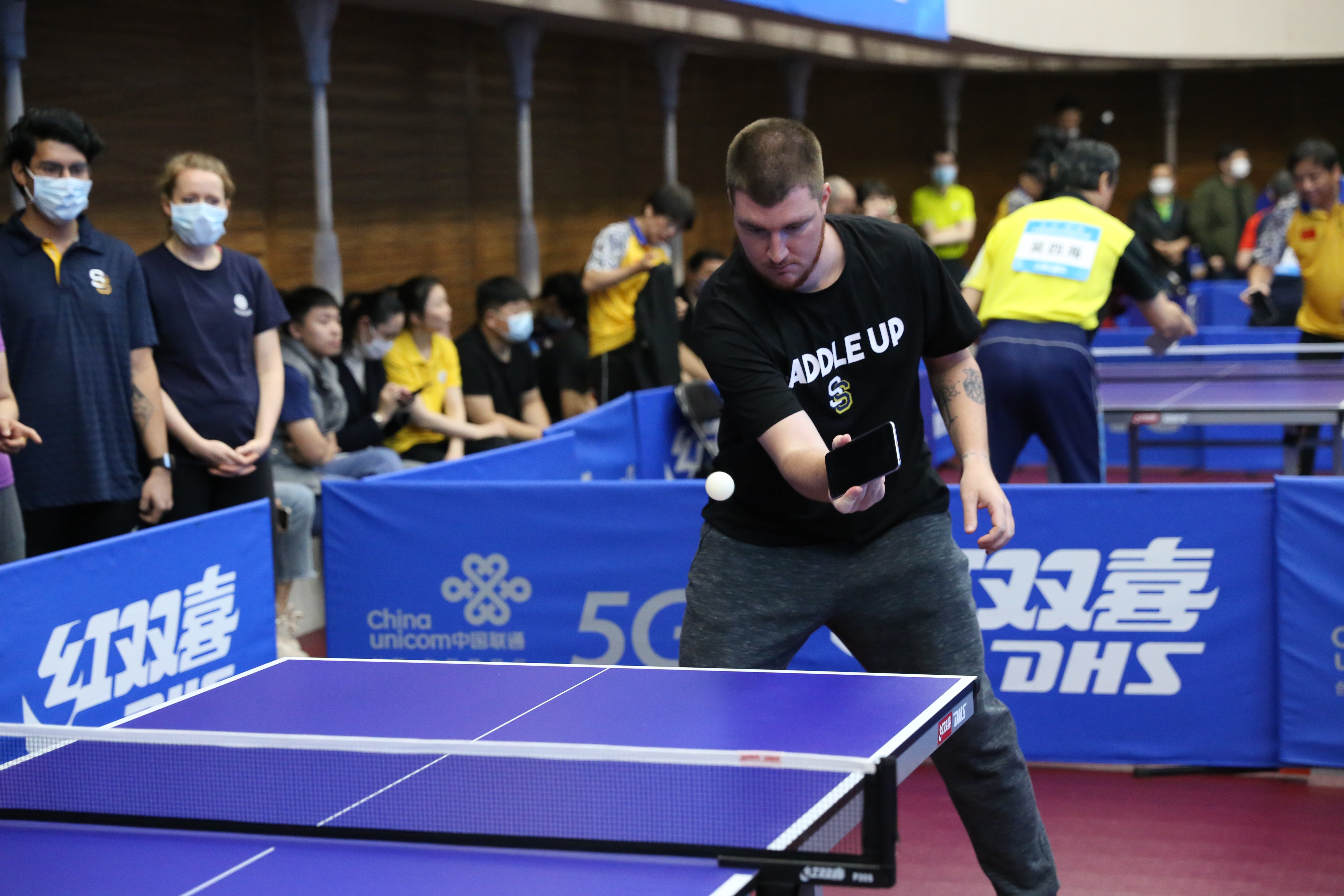 来自安徽乒协的高翔已经有几十年的打球经历。一局比赛下来,艰难赢下对手后,高翔连连摇头。“我还真没用手机打过,与传统球拍比起来,手机打球不能摩擦,一摩擦就会掉下来,但形式很好玩,正所谓一机在手,打球不愁嘛。”