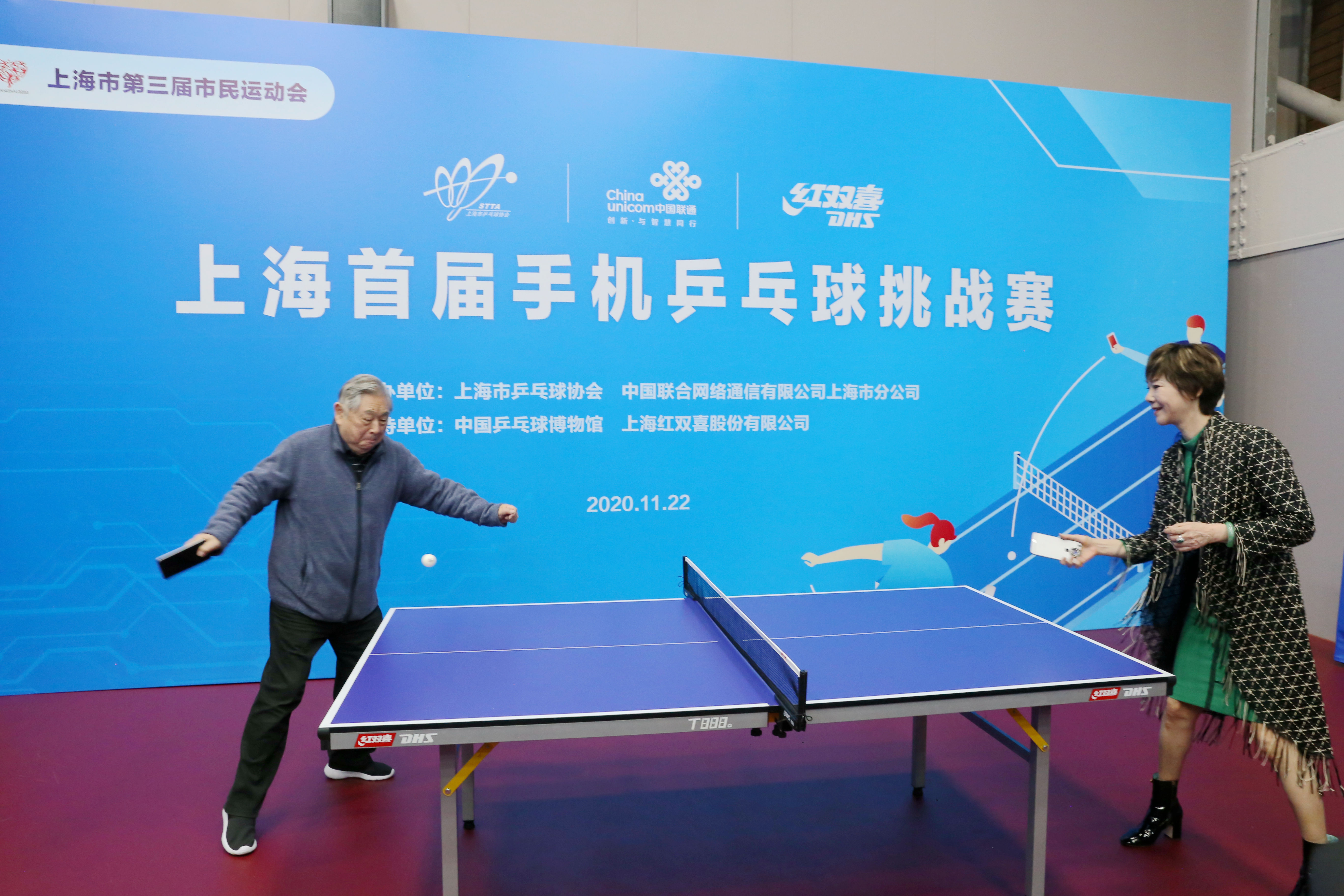 几乎人人都拥有的手机,如今有了乒乓健身的新用途。11月22日下午,以创新与智慧同行为主题的2020年上海首届手机乒乓球挑战赛在中国乒乓球博物馆举行。来自全市各区乒协、部分社会乒乓球俱乐部、机关以及长三角地区的125名乒乓球爱好者组成的32支代表队参加了这项新颖的比赛。