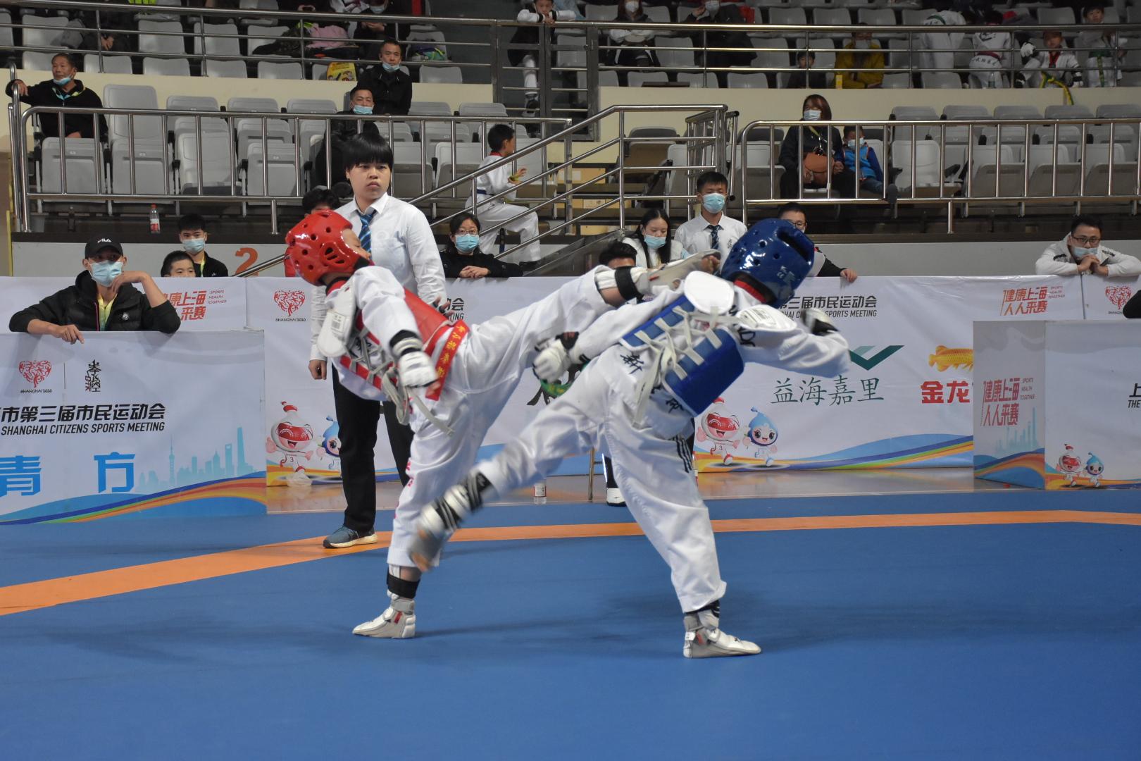 21日,上海市第三届市民运动会跆拳道联赛正式收官。群众性体育赛事也可以很竞技,在总决赛的舞台上,不乏身手矫健的普通市民。从竞赛装备到专业技术,从执裁水平到舞台、灯光、音效,无疑都展现出“阿拉”身边的奥运会与国际接轨,对标国际大赛。赛场上,运动员你一拳我一脚,彰显了跆拳道运动的魅力。
