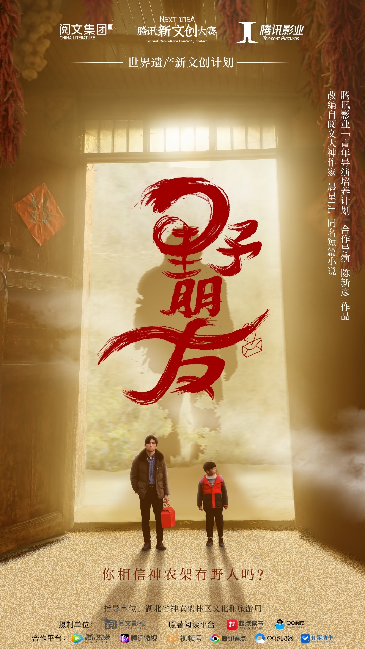 同为湖北人,腾讯影业“青年导演培养计划”合作导演陈新彦基于短篇小说《野朋友》拍摄了同名短片。在湖北省神农架林区文化和旅游局的指导下,《野朋友》剧组得以深入神农架林区取景,并将当地文旅元素融入其中。短片以“神农架野人传说”为线索,串联起父亲与爷爷、父亲与孩子、父亲与母亲间的对峙隔阂与情感联系,紧张的剧情节奏,细腻的情感表达,既加深了神农架的神秘之感,又表现了中国式的亲情关系。