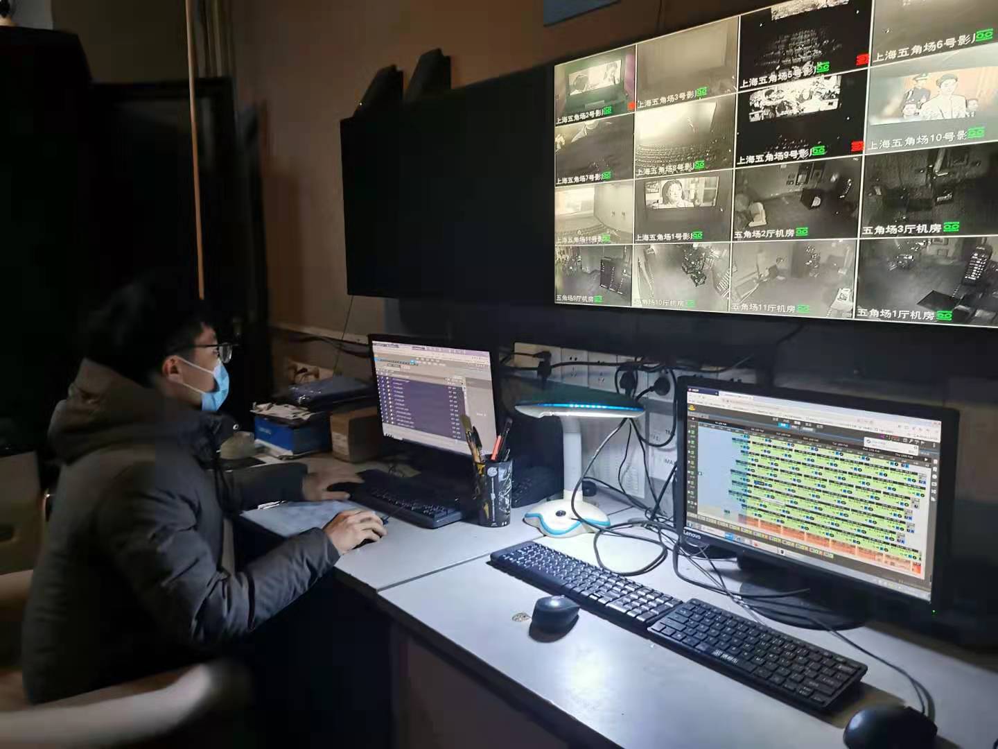 记者采访时就发现,小江工作台上一共有三个屏幕,最大的屏幕上是他所在的五角场万达影院的12个影厅的放映情况,而另外两台电脑上则实时显示着金虹桥和宝乐汇17个影厅的放映情况,加起来近30个放映厅,需要小江一人线上线下同时监控。