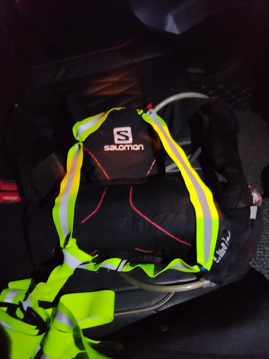 因为时间长、距离远,有近乎一半时间都是在黑夜中奔跑,段鹏涛准备充足,戴上照明头灯,穿着防寒外套,背上荧光背包。里面还有能量补给的胶棒和一些防护用品。