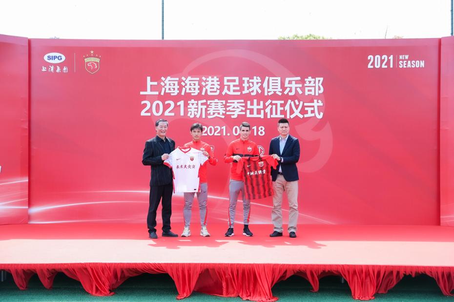 这是近几年来,海港队首度于世纪公园训练基地举行新赛季的出征仪式。在经历了不平凡的2020赛季之后,海港队与中超其它队伍一样,在国内进行了完整的冬训备战期。