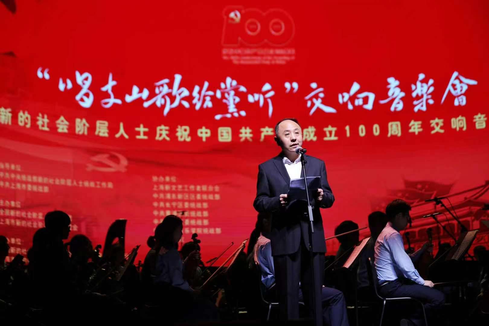 上海是中国共产党的诞生地。来自全国各地的新的社会阶层人士“相约”于此,以一台交响音乐会展示新的社会阶层人士的爱党爱国情怀,为建党百年送上自己的祝福,在《我是中国人》朗诵表演者之一、中广联合会电视剧导演委员会副秘书长孔令晨看来,有着特别的意义。“在我们这个班里面,其实大家有各行各业都非常有成就的(人),包括有导演,有艺术家,有我们的很好的策划人什么的。那么在演出的筹备过程当中,就群策群力。在建党100周年的时候能够表达我们的一份心情,能够为中国共产党能够有这样的一个历程,我们都很感慨。”