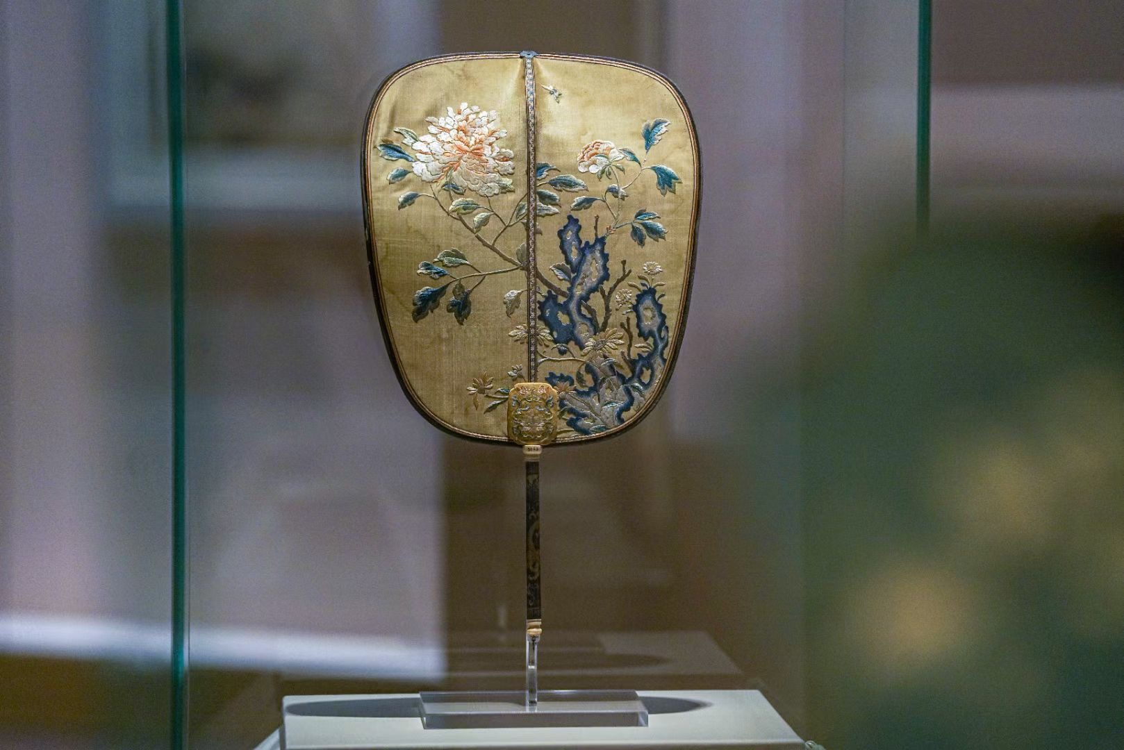 另一类则心思营巧,以雅致的小幅画卷、册页或者扇面为样式,力求每一处都精工细作,方尺之间所见竹石、花卉和虫草等,摹画如真,缂绘难辨。明代缂丝画呈现出朴拙可爱的风格,工艺细腻,缂出图案后略加补笔,令人爱不释手。清代缂丝风格逐渐转向,画面更为精致妍丽,色彩明媚鲜亮,中后期则大量以绘补缂,渐为时尚,蔚然成风。此单元将首次展出上海博物馆藏11件(套),共17件缂丝画。其中有画心宽118厘米,纵164厘米的缂丝巨作《群仙拱寿图》,亦有作为手持精巧之物的缂丝画纨扇。