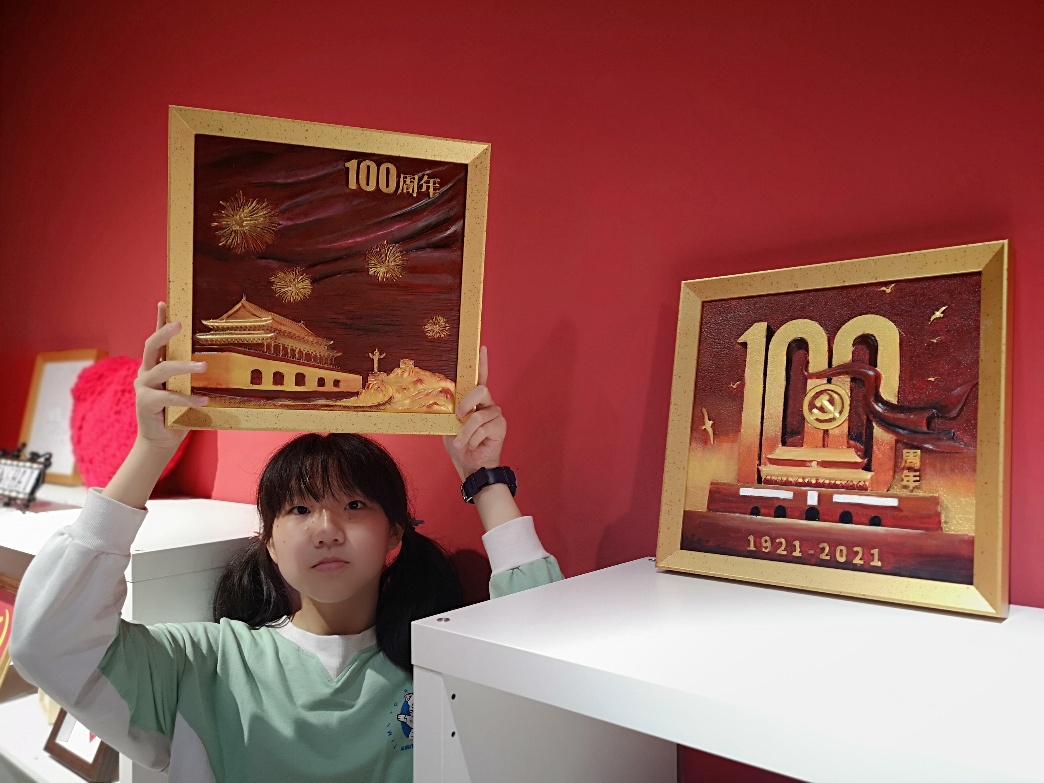 据悉,在展馆一楼开设的红色文创手工坊一经推出便备受好评。100周年举国同庆浮雕装饰画、龙陵立体画、英雄彩绘徽章冰箱贴、英雄挎包、爱党纪念主题金工手环…颇具创意设计与美育理念的文创体验不仅吸引了前来观展的小朋友与手工爱好者,也让参与者在动手中体悟了“红色美学”。