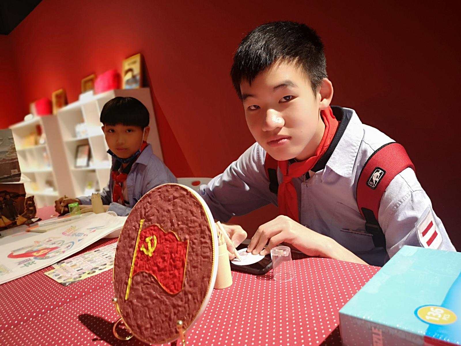“展览的手工体验让我耳目一新,我们先选取自己喜欢的人物角色,然后开始对图片进行上色,最后通过磨具压制成为一枚勋章。这时,有同学产生了好奇:这些人物都是谁啊?经过讲解员的介绍,原来这些都是年轻时去世的烈士并且都安葬在龙华烈士陵园,这顿时让我肃然起敬。”参与红色文创手工制作的少年报小记者杨震越说到。