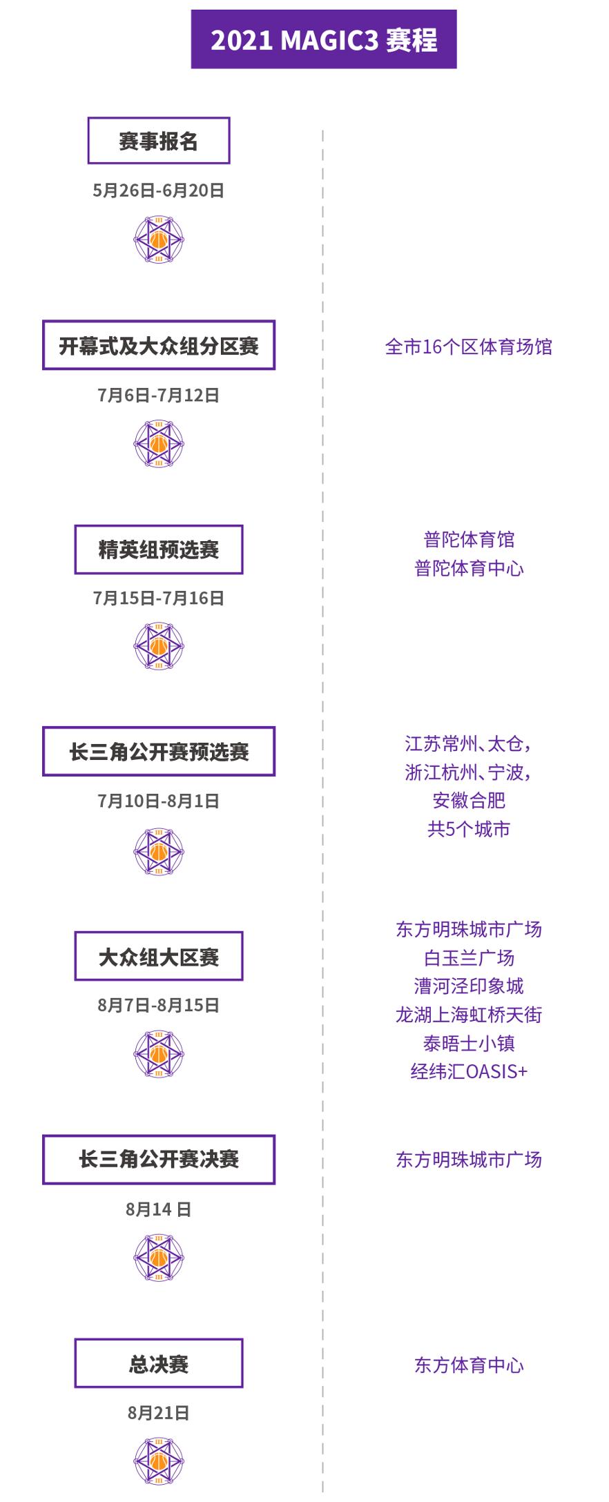 2021年,“三岁”的Magic3上海市青少年三对三超级篮球赛(以下简称“Magic3”)即将战火重燃,掀起一场青春风暴。比赛7月6日开幕,8月21日完赛,设有分区赛、大区赛、总决赛三个阶段。