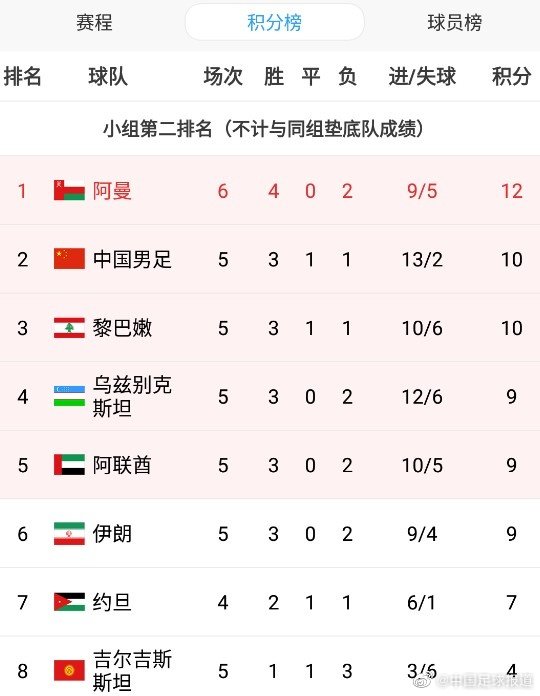 目前,国足在8个小组第二当中,以10分的有效积分排名第二,并且有11个净胜球。由于身后几支球队都要在最后一轮与小组第一竞争,伊拉克和伊朗、阿联酋和越南、沙特和乌兹别克斯坦的比赛,将决定小组第二名的最终积分,这几支球队无论小组第一、第二是否有变化,积分都可能停留在11分。
