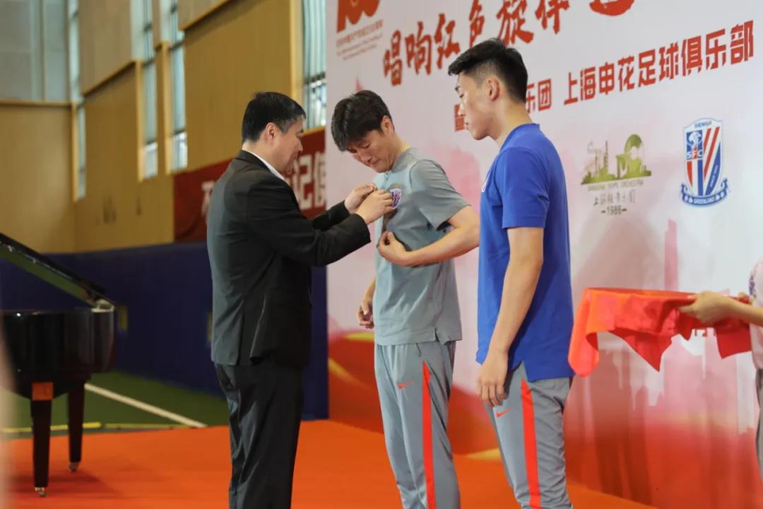 6月15日下午,上海申花足球俱乐部携手上海轻音乐团、五星体育在申花康桥基地举办了“唱响红色旋律 追逐绿茵梦想”主题党日活动。在活动中,上海申花队领队毛毅军和球员朱辰杰宣誓入党,伴随着红色旋律唱响,体育人、音乐人和媒体人齐聚一堂,开启了一堂别开生面的文艺党课。