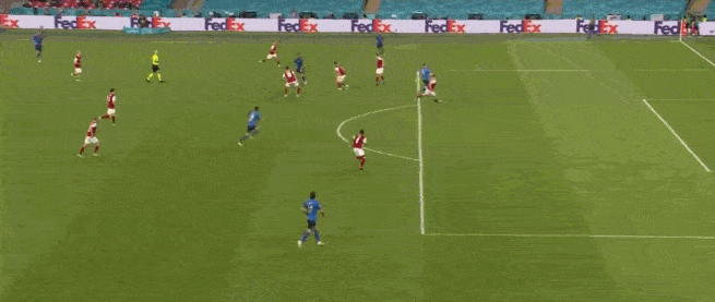 这些纪录从比赛的第95分钟开始上演。斯皮纳佐拉禁区弧顶左侧传中,小基耶萨小禁区右侧踩球晃过防守球员后抽射破门,意大利1比0!这是小基耶萨收获的本届欧洲杯的第一球,亦是他国际大赛第一球,也是他国家队生涯的第二球。