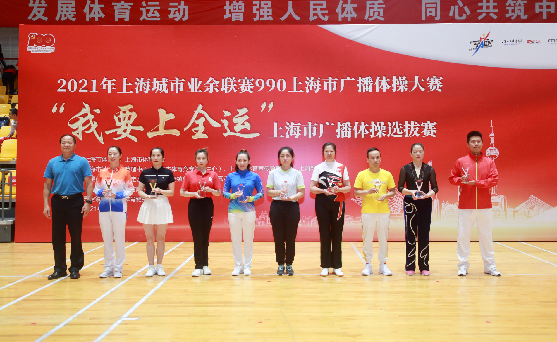 “70年广播体操以健康致敬建党百年”,2021年上海城市业余联赛990上海市广播体操大赛,暨“我要上全运”上海市广播体操选拔赛,6月26日下午在嘉定区市民健身中心举行。