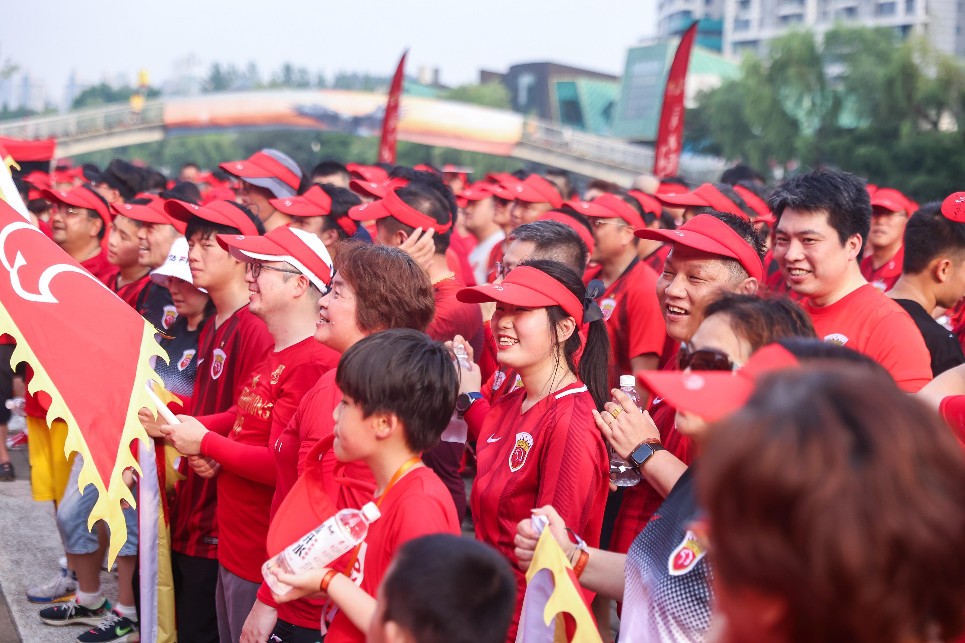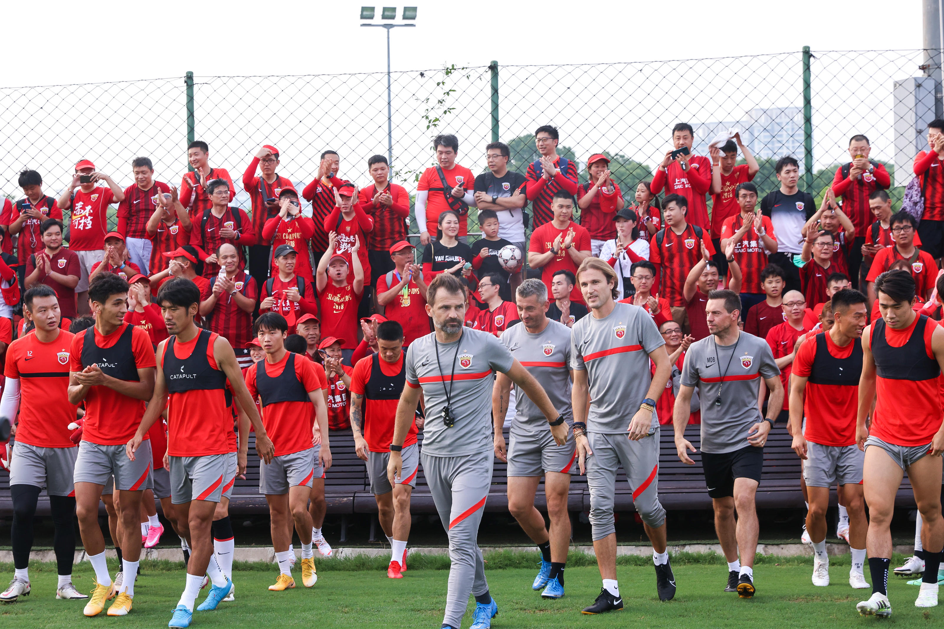 作为球队的第十二人,所有参赛球迷在比赛结束后,一同前往了世纪公园训练场,观看球队的公开训练。训练开始前,全体球员、教练员与所有来到现场的球迷,共同完成了一幅全家福拍摄,为球队即将开始的中超联赛壮行。