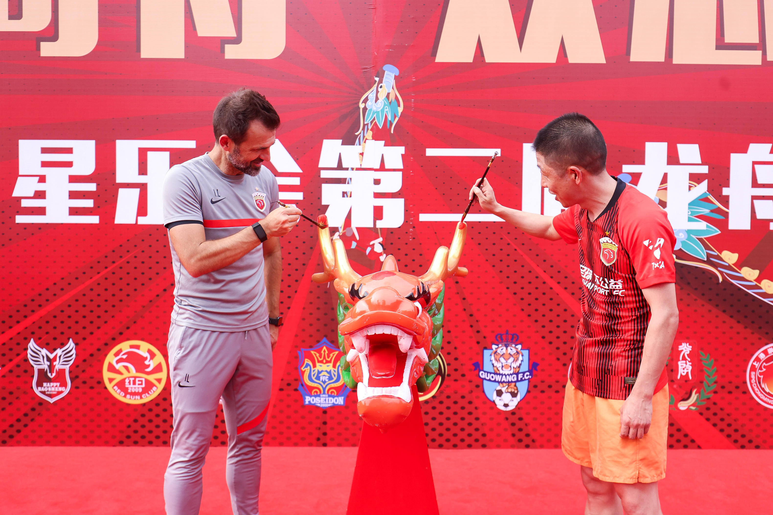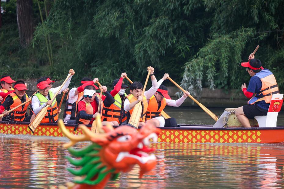 比赛开始前,俱乐部张敏董事长延续了传统的龙舟点睛仪式,鸣锣三次,宣布本届赛事正式开幕。最终,经过多轮角逐,由魏震带领的“5号”战队获得了最终的优胜,李圣龙带领的“13号”与里卡多·洛佩斯带领的“6号”战队则分获二三名。赛后,张敏董事长为前三名的队伍颁发了定制纪念奖牌。