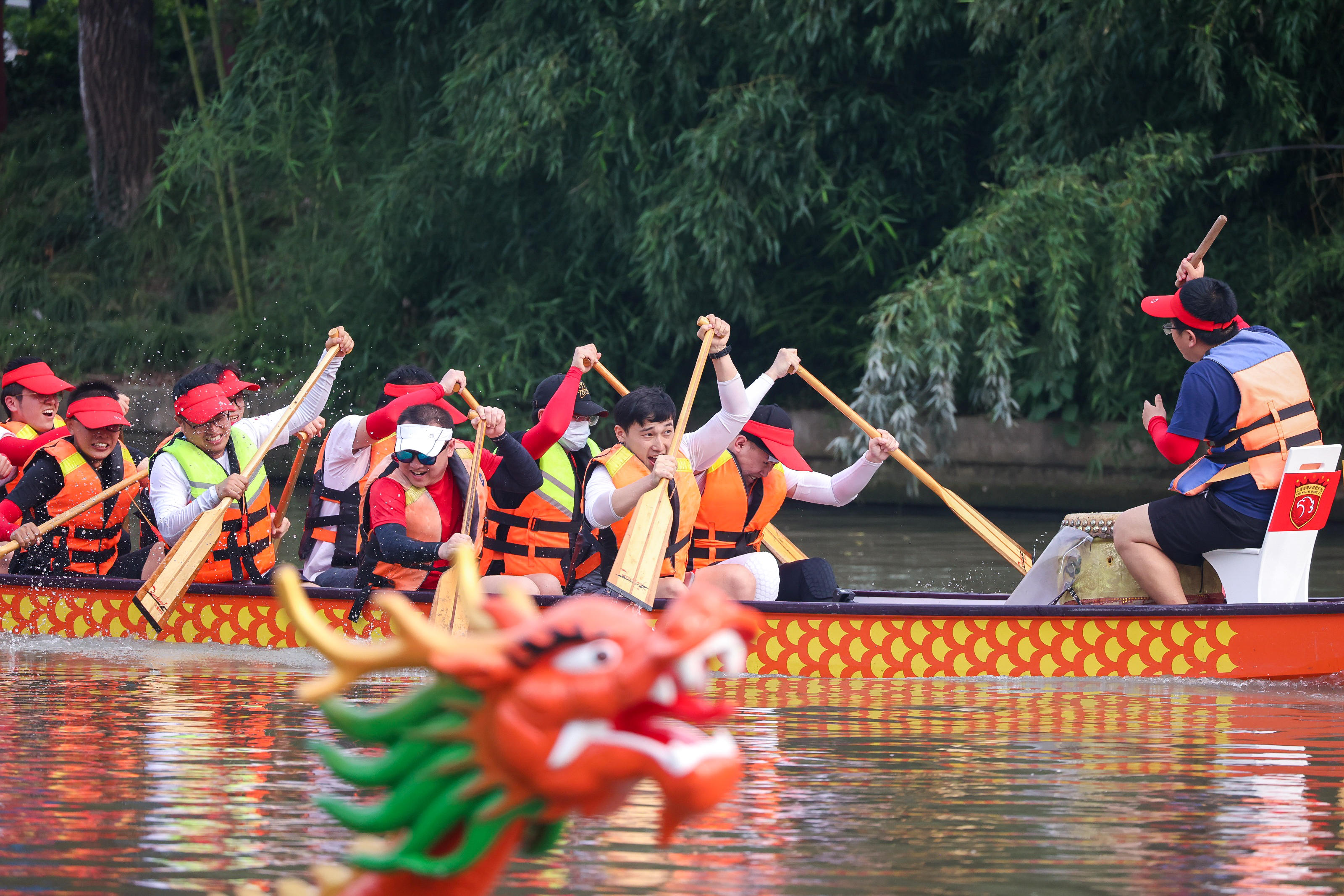 本次“同心同舟”龙舟赛共有13支队伍参赛,各支战队分别由球迷、媒体及俱乐部工作人员组成。球员王燊超、李昂、吕文君、于海、买提江、张卫、洛佩斯、李圣龙、魏震、杨世元、阿布拉罕、贾博琰也在俱乐部董事长张敏与主教练莱科的带领下,以抽签的方式加入战队,与大家共同体验了一把竞速乐趣。