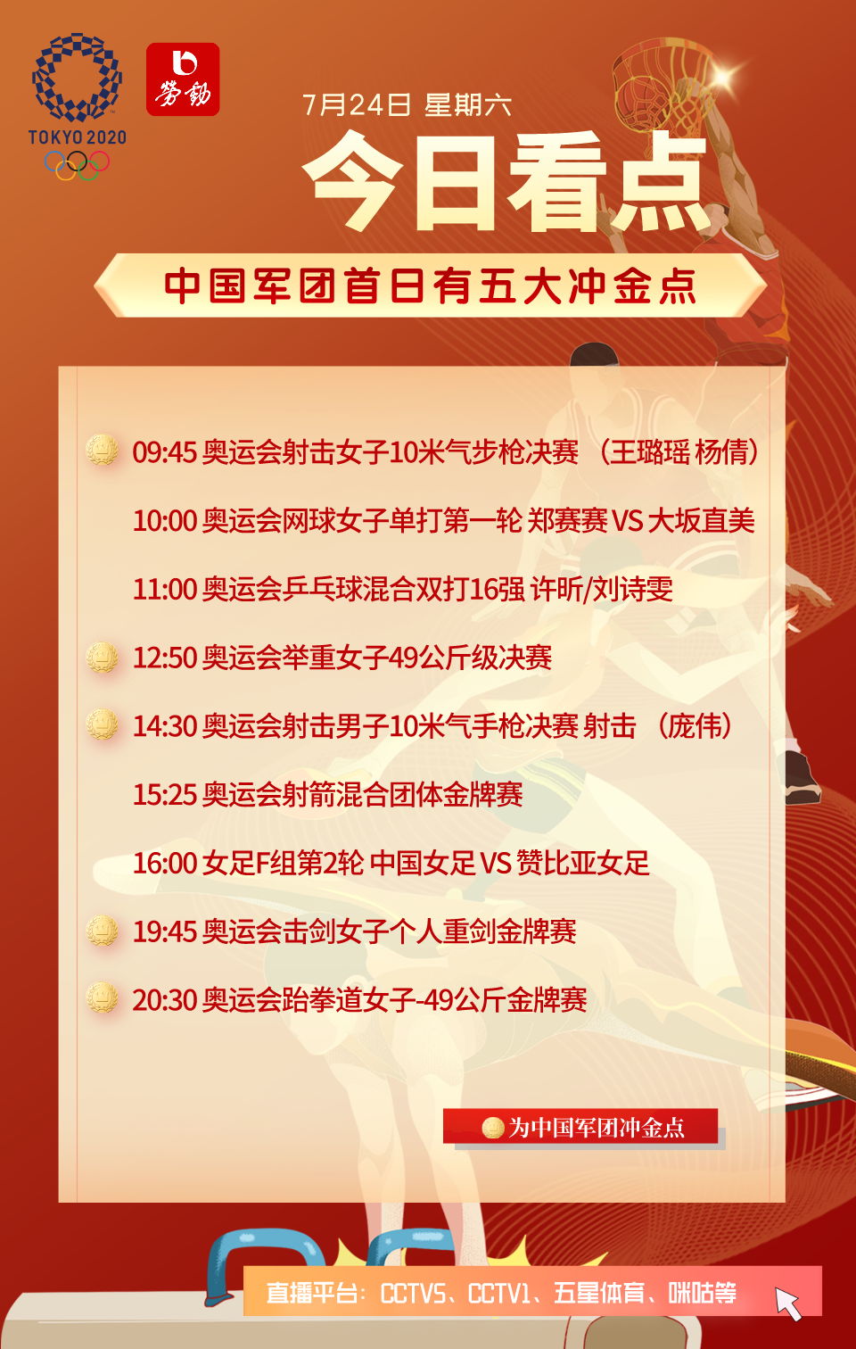 东京奥运会将在今天(24日)展开首个金牌日的争夺,5年前的里约奥运会,中国军团罕见地首日未有金牌入账。5年后再战,中国军团在射击、击剑、举重、跆拳道等多个项目都有夺金实力,有望“首日见金”,甚至斩落本届奥运会首金,力夺开门红。