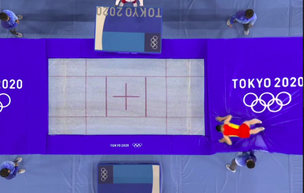 与里约奥运会相比,东京奥运会蹦床比赛增设了位移分评判。在此情况下,高磊和教练组还是决定放手一搏——提高难度系数。
