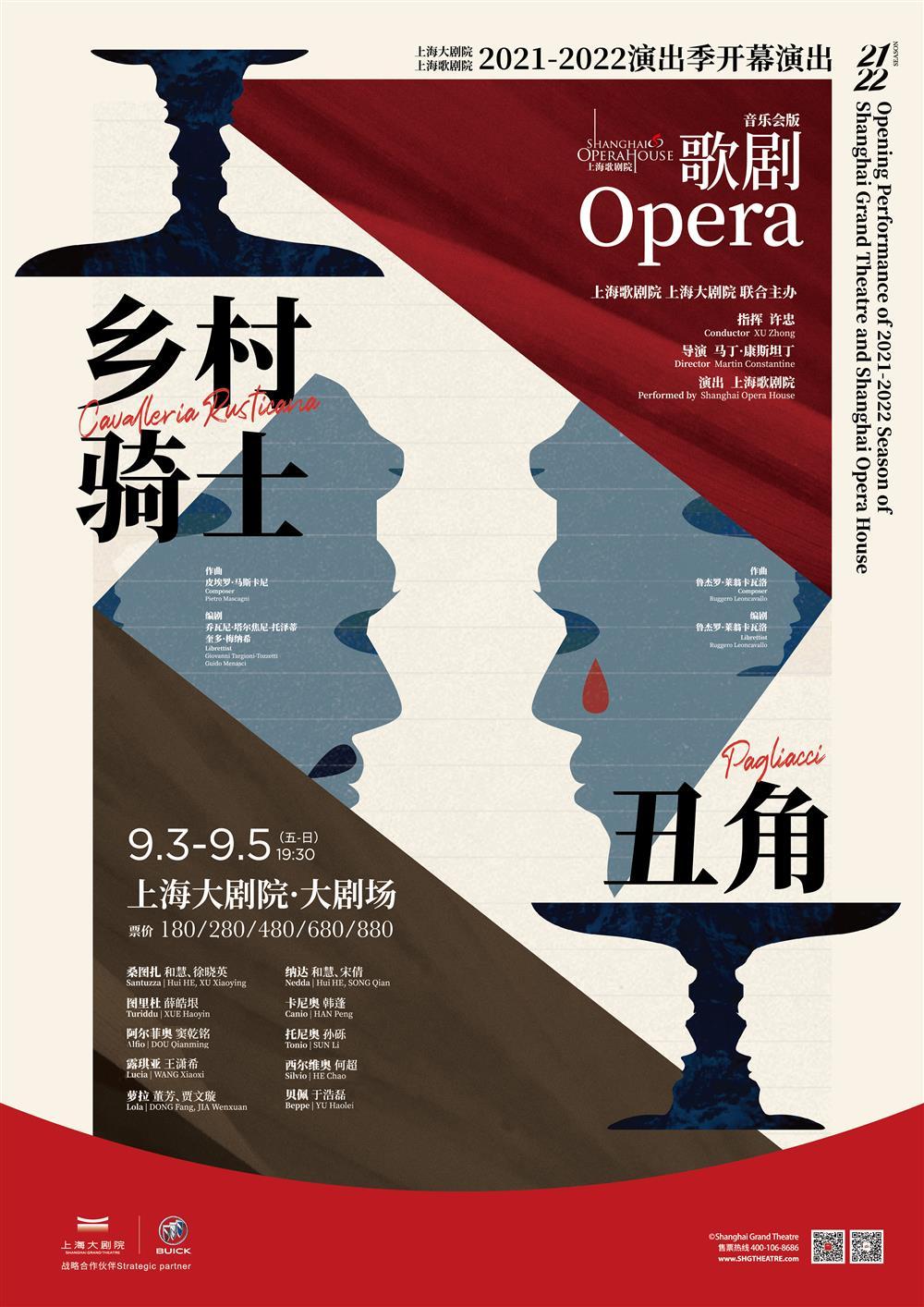 意大利作曲家马斯卡尼的《乡村骑士》是一部情节紧凑、极具悲剧色彩的独幕歌剧,音乐凝练而动人,开辟了短篇歌剧的先河。而莱翁卡瓦洛的《丑角》,正是诸多效仿马斯卡尼这部短篇歌剧中最为成功的一部,“戏中戏”的巧妙构思更为该剧增添了戏剧张力,紧扣人心。同样作为“真实主义”歌剧的代表力作,这两部作品不仅一经公演即获得成功,更在之后的演出中,逐渐成为同台连演的“黄金搭档”。《乡村骑士》中的间奏曲、桑图扎的咏叹调《听我说,妈妈》和图里杜的咏叹调《妈妈,那些烈酒》,以及《丑角》中卡尼奥的咏叹调《穿上戏装》《我不再是小丑》等,更成为深受观众们喜爱的经典段落。